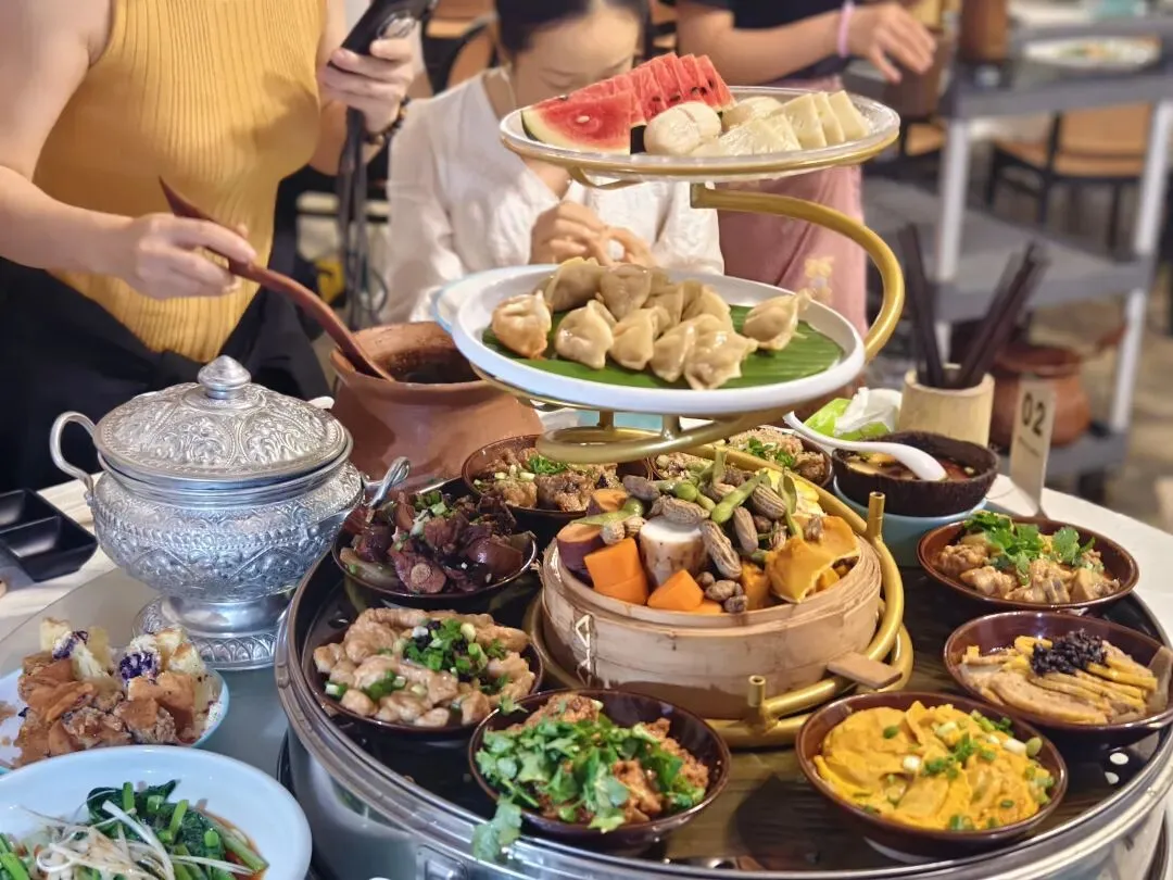 老挝特色小火锅,糯米饭,老挝啤酒