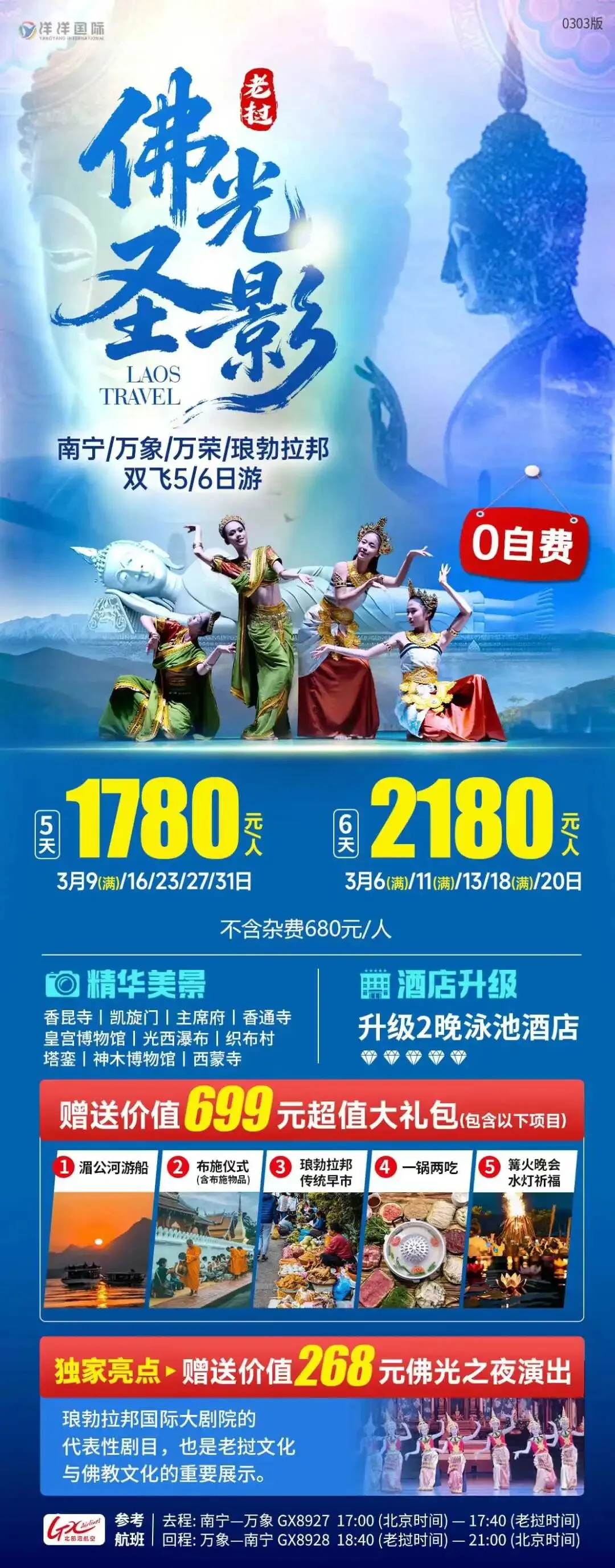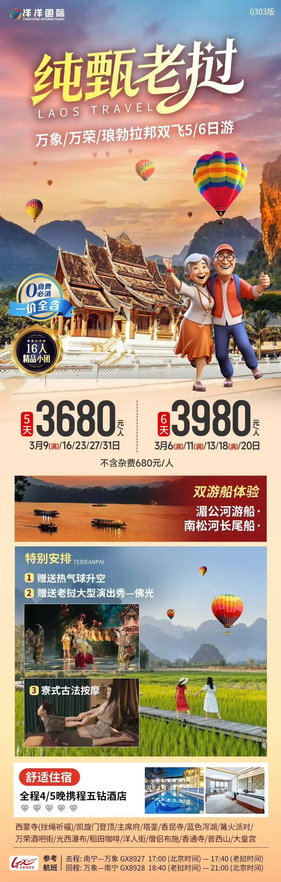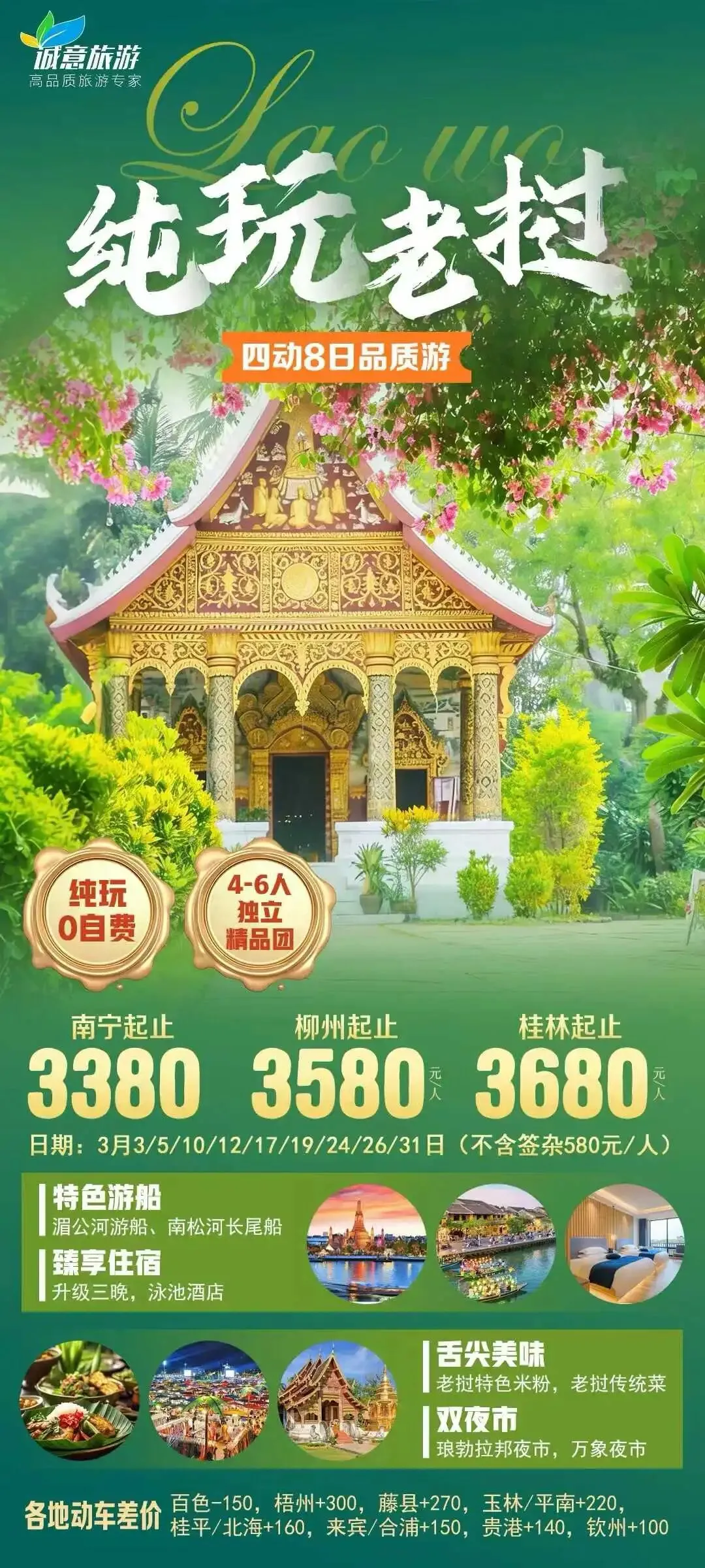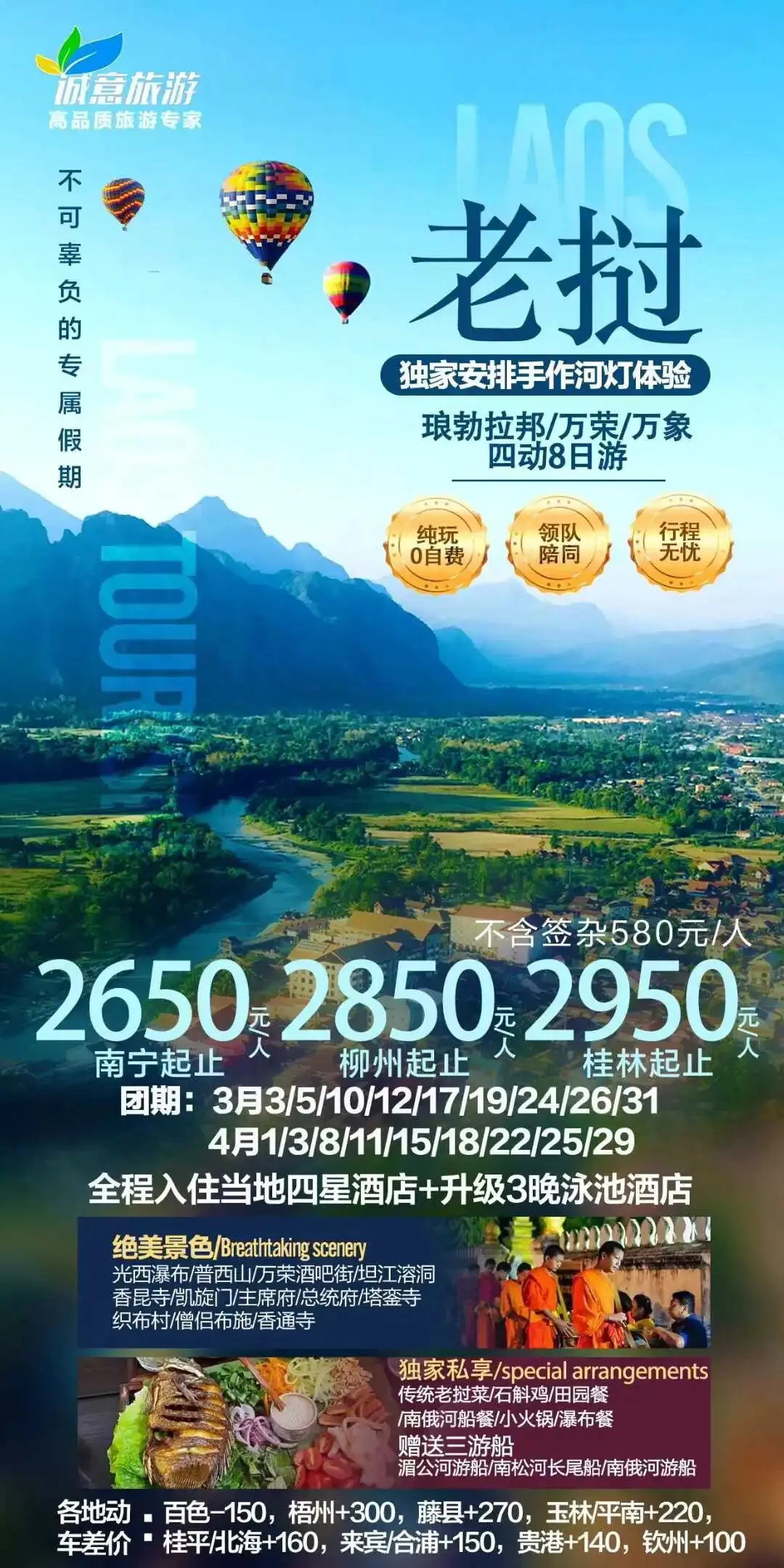 【老挝】3月 老挝琅勃拉邦、万荣、万象旅游线路推荐 南宁直飞万象/国际列车直达琅勃拉邦