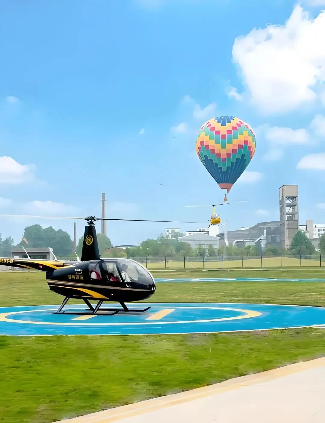 无人机竞速赛道(设置障碍赛道,供玩家操控无人机竞速比赛)、室内跳伞风洞、滑翔伞起飞坪(提供专业教练陪同的短途飞行体验,俯瞰公园全景)、热气球(固定系留式热气球,适合家庭和情侣体验低空观景)等