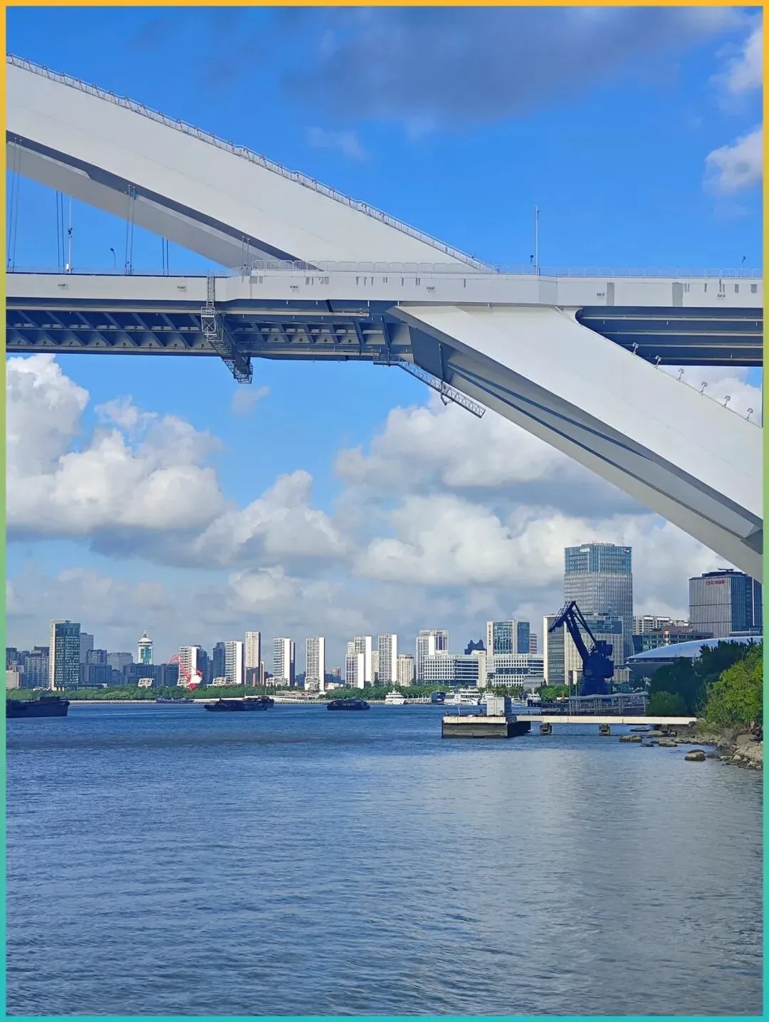 两岸山色一点点靠近。