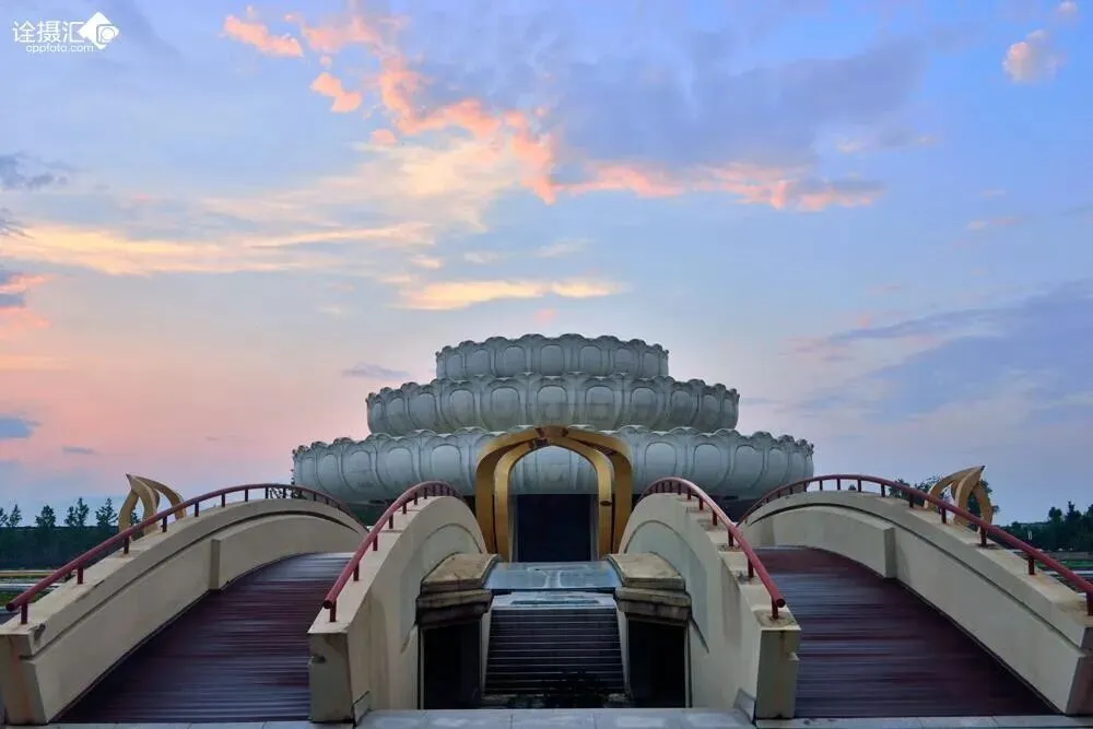 九华山大愿文化园景区位于中国四大佛教名山之一、国家级重点风景名胜区、世界公认的地藏菩萨道场――九华山风景区北麓柯村。大愿文化园中的建筑主要包括殿堂厅馆、亭桥廊榭、塔台楼阁等。为充分彰显佛教特点和地域特色,设计者在传统建筑形式的基础上大胆创新,将汉唐建筑的雄浑风格巧妙地融入其中,表现出唐风徽韵的独特神韵,有着强烈的艺术个性特点和实用的游赏功能。