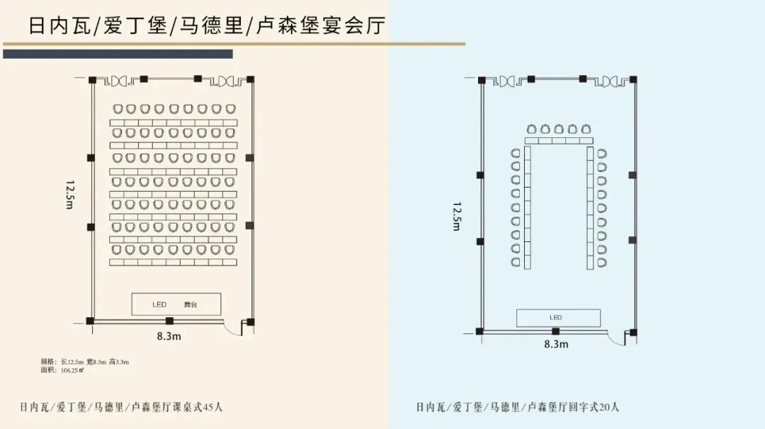 威尼斯会议室设施完善,还有马德里、索菲亚、凡尔赛等功能多元化的高品质会议室,可同时满足不同类型会议需求,是举行新闻发布、学术研讨、产品推介展览、各式宴会活动的理想场所。