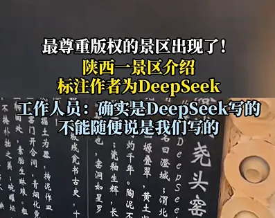近日,#景区介绍作者为DeepSeek游客发声#话题引发热议,冲上微博热搜。据新闻报道,有游客反映,陕西渭南尧头窑古镇的景区介绍牌上,赫然标注“作者:DeepSeek”。工作人员坦然回应,确系AI去年捉刀,之所以如此标注,是出于“版权考虑,不能随便说是我们写的”。