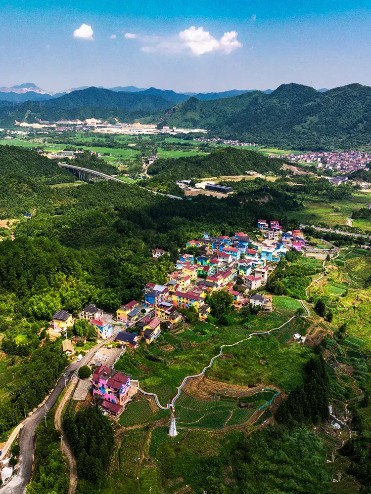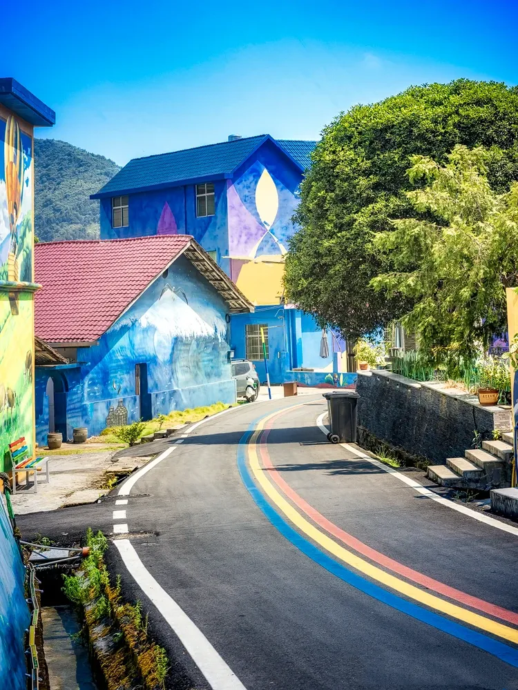 村里的小屋在绘画师的笔下成了一个个精致而又梦幻的艺术品,与周围的景色融为一体,构成了一个彩色童话王国!