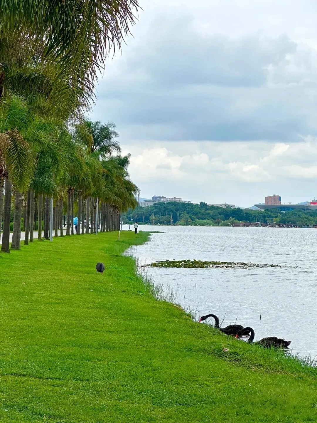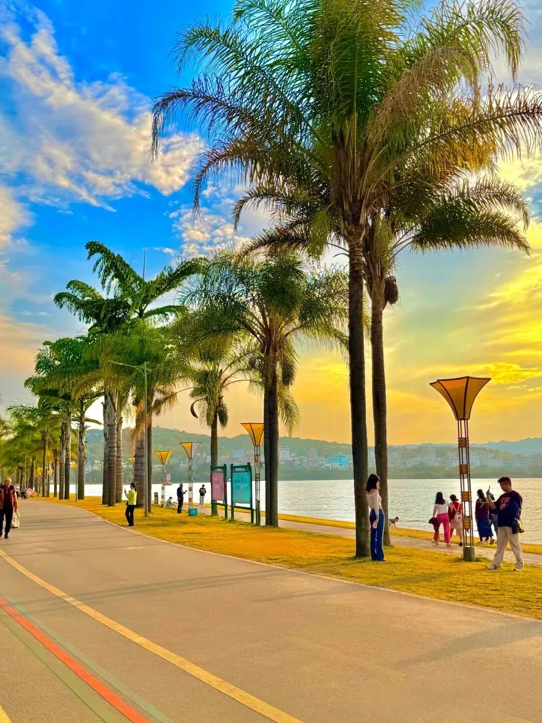 午后,租一辆自行车沿湖慢行,看黑天鹅在岸边优雅踱步。孩子们最爱的是一片人造沙滩,挖沙、戏水,欢笑声不绝于耳,难怪人们称它为“红河小三亚”。但这里最震撼的,永远属于落日时分——夕阳的余晖将整个湖面染成金橙色,远处的水鸟、近处的棕榈树,都成了这幅油画里的剪影。这一刻你会明白,为什么弥勒人的生活总是那么从容。