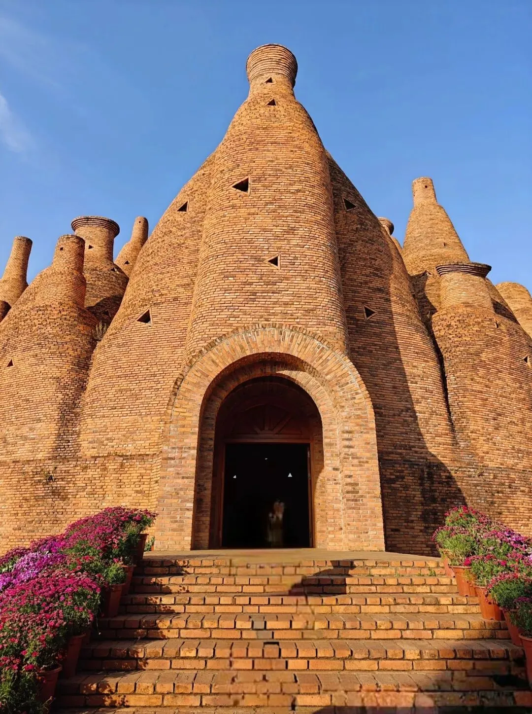 东风韵艺术小镇是一个用红砖砌出的异想世界。没有一根钢筋、一颗钉子,万花筒艺术馆凭借独特的几何结构撑起了魔幻的空间。四月的薰衣草田正值花期,紫色的花海与远处的风车、红砖建筑相映成趣,“爱的路上有你有我”的小米轨充满了怀旧与浪漫。随便一个转角,都能拍出刷爆朋友圈的INS风大片。