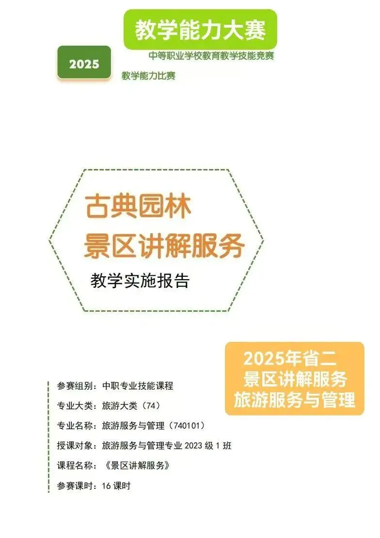 2025年省二《景区讲解服务》教学能力大赛《古典园林景区讲解服务》旅游大类旅游服务与管理专业教学能力比赛教案实施报告!大赛优势!