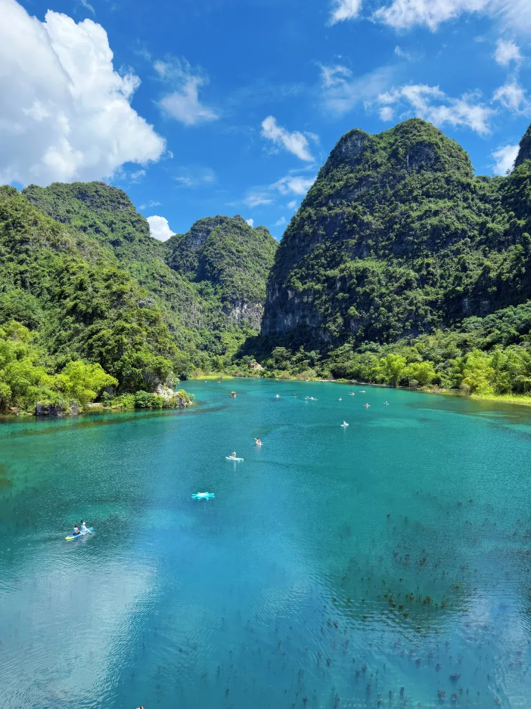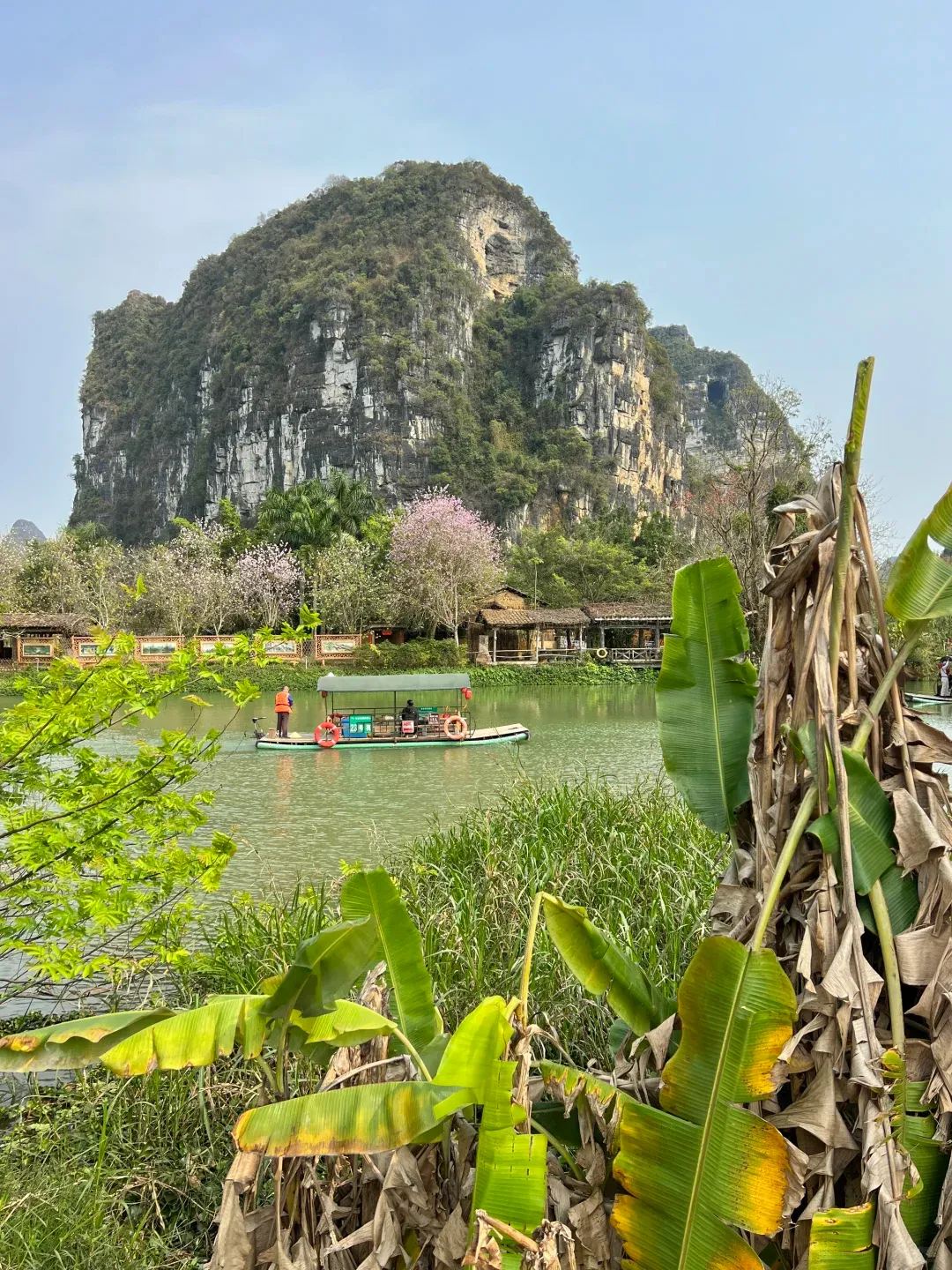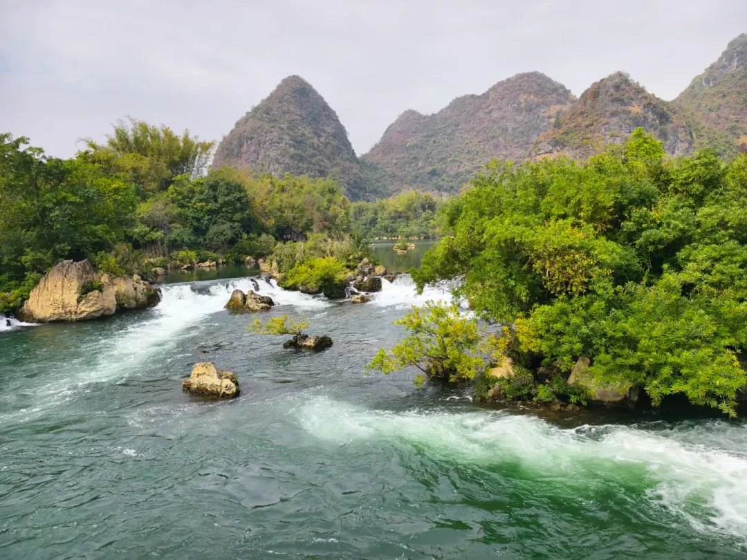 乘农家小船穿行于水上森林与奇峰之中,沿途可见壮族村庄、稻田,烟火气与自然之美完美融合,船工还会讲解沿途景点的传说,偶尔能看到水鸟翻飞,静谧又惬意。这里游客稀少,原生态氛围浓厚,适合想避开人流、喜欢慢游的朋友,建议与明仕田园择一深度游,避免重复体验。