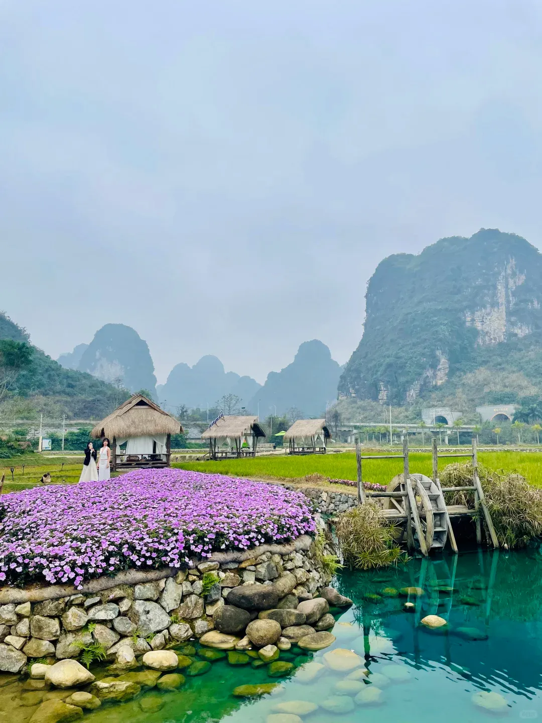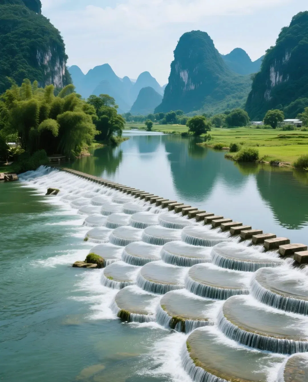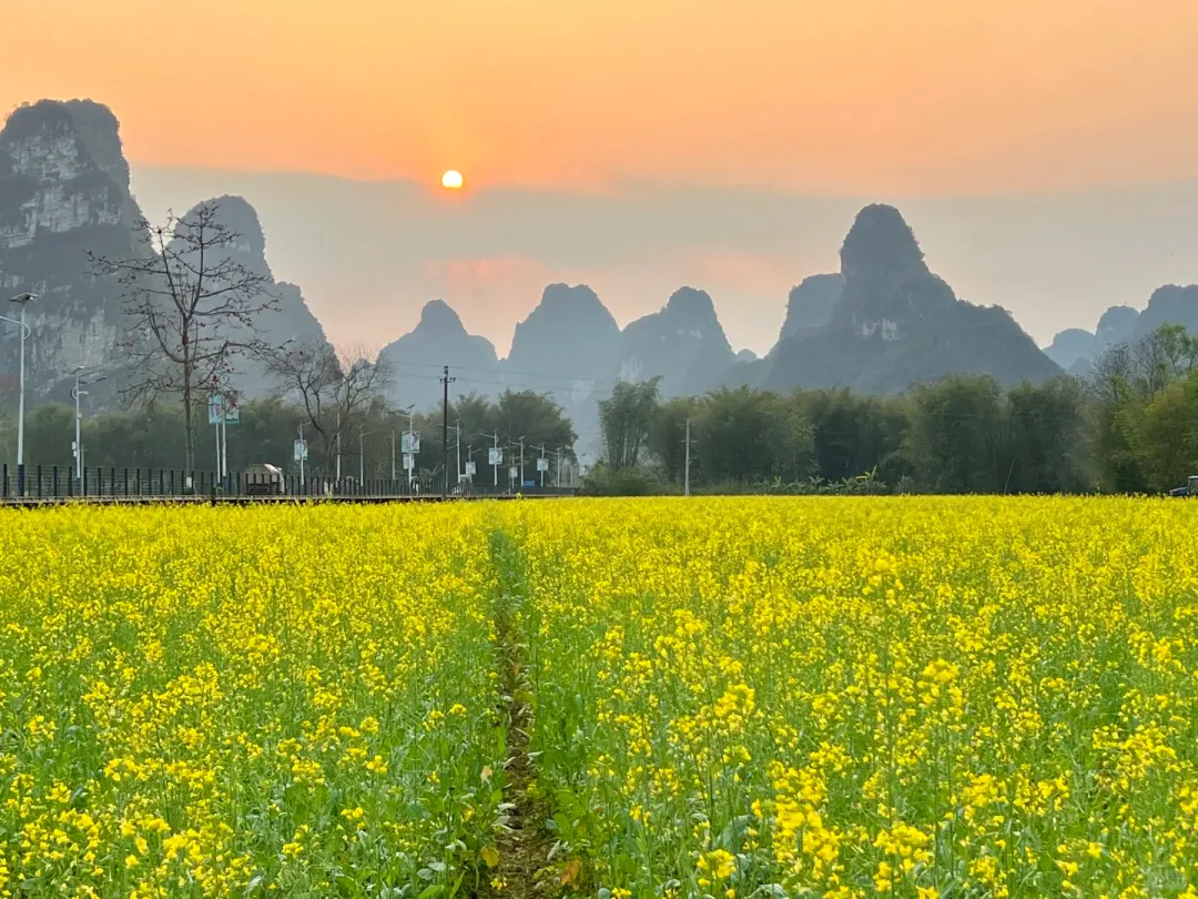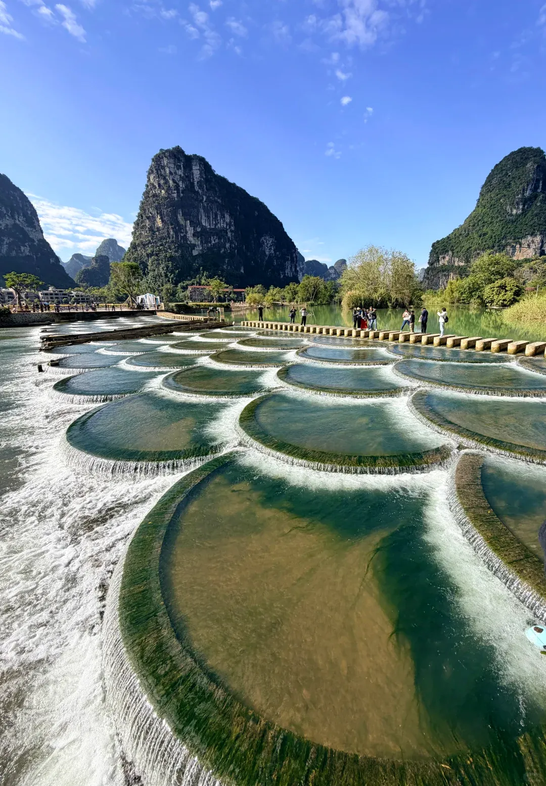 🌟 推荐理由:喜欢田园风光、想拍治愈大片的朋友,这里一定要来!被誉为“小桂林”,是《花千骨》“长留仙境”的主要取景地,喀斯特峰林环绕着碧绿的明仕河,稻田、村落、竹筏相映成趣,宛如一幅天然的田园诗画。最佳玩法是骑行或乘竹筏,骑行穿梭在田间绿道,吹着微风,看两岸山水倒影,随手一拍都是氛围感大片;
