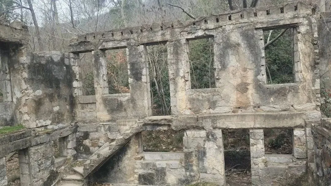 在前往灵谷塔的途中,我们路过桂林石屋的遗址。这座曾是“主席官邸”的建筑,在战火中化为一片布满弹痕的断壁残垣。