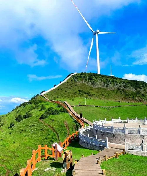 乌蒙大草原上最显眼的不是草也不是牛羊,是一排排白色的风力发电机,这些风车沿着山脊线排开,叶片慢慢转着,有人觉得这些工业设施破坏了草原的原始感,但其实它们反而成了这个地方的标志性景观,因为风车的存在说明了一个事实,就是这里的风很稳定、很有力,风能资源好到值得建这么大规模的风电场。