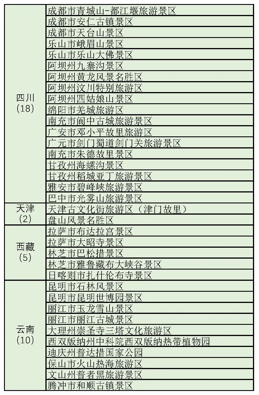 358家国家5A级旅游景区名录 List of 358 National 5A-Level Tourist Attractions