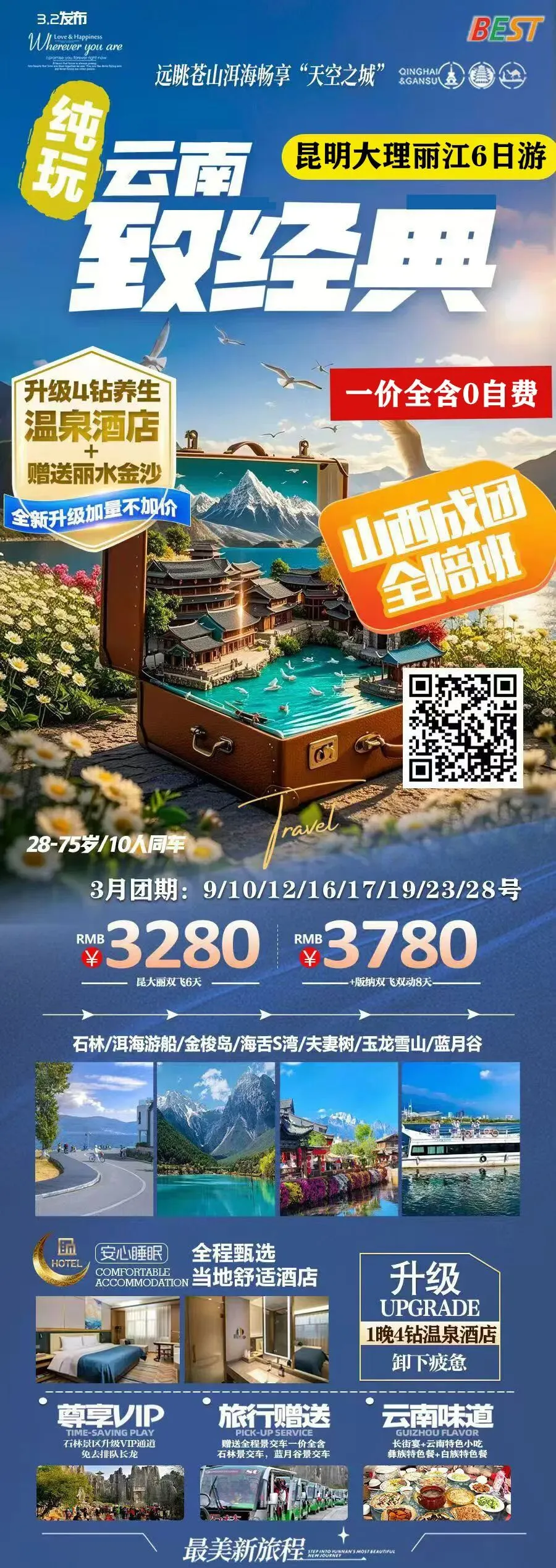 云南旅游山西独立全陪班8日游特价3780元立减 ,太原起止,全程纯玩0购物,安排4晚3钻酒店+1晚4钻温泉酒店