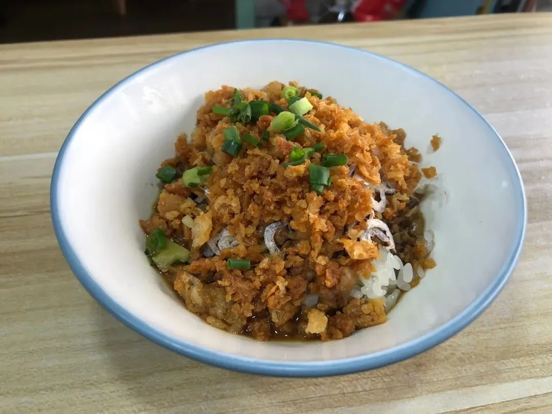 当那碗晶莹剔透的糯米饭端上桌时,视觉的冲击力首先打败了味觉的防备。热腾腾的糯米上,铺满了极其酥脆的重油条碎,一勺极其浓郁的香菇肉末汤汁浇在上面,散发着致命的香气。我拿起勺子迅速拌匀,送入口中。那一瞬间,极其醇厚、极其丰富的口感在舌尖上轰然涌出。糯米的柔韧粘糯、油条极其惊艳的爆烈酥脆、肉汤的鲜美咸香,在口腔里完成了一场无与伦比的交响乐。它不需要任何暴力的调料去强行刺激神经,这种将不同食材的口感搭配到极致的巧思,直接穿透了味蕾,如同暖流般击中了灵魂。