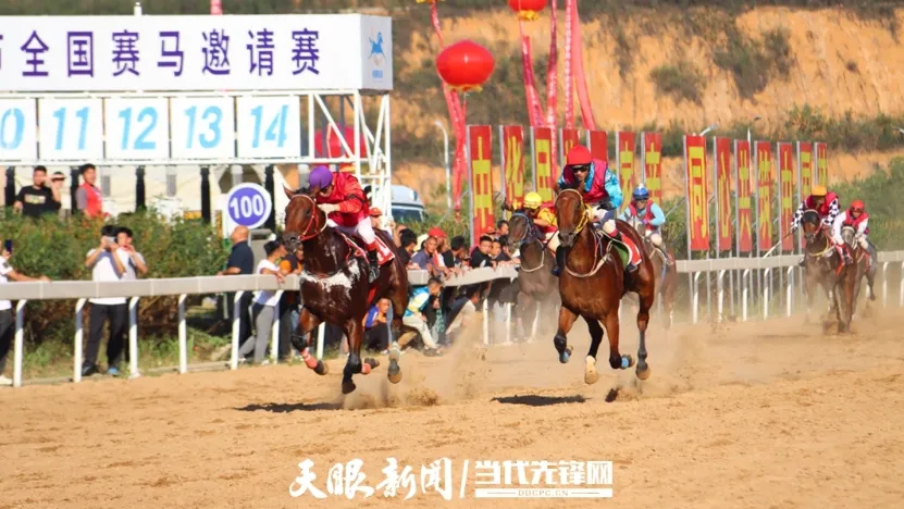参加贵州“村马”全国赛马邀请赛的骑手纵马奔驰在赛场上。