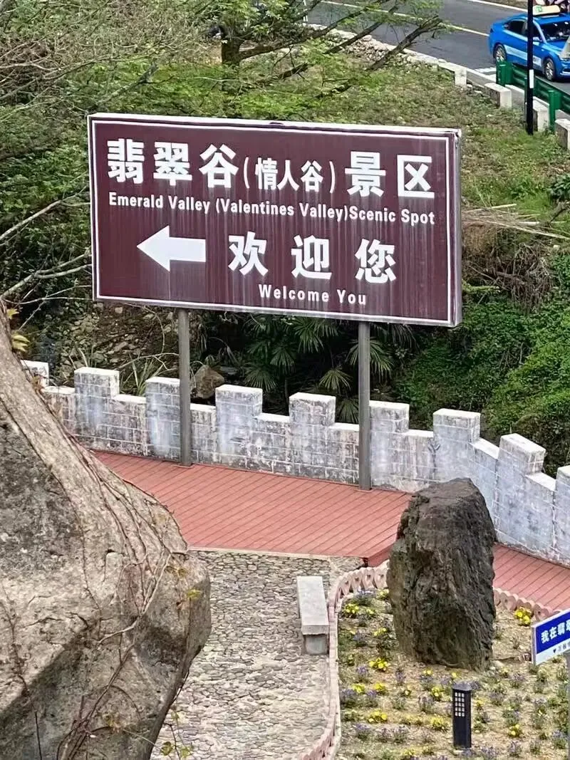 翡翠谷又名“情人谷”,其标志性景点包括刻有红色“爱”字的亚洲最大爱字石刻。据说电影《卧虎藏龙》中竹梢打斗、池边爱恋、深潭寻剑等场景,都是在这里取景拍摄的。
