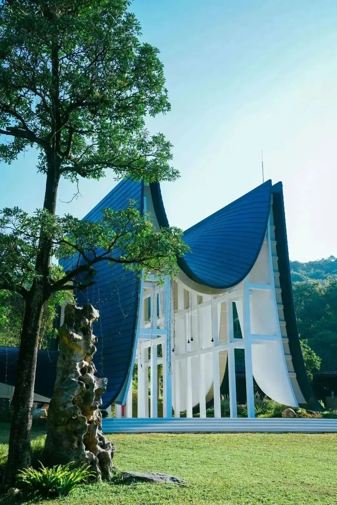 打卡海拔520米幸福殿堂,广州客天下·幸福殿堂,秉承着与自然共生的美好理念,与自然界的水、风、光与几何建筑空间融合一体,静谧而又充满神圣感,让森林婚礼回归自然,摒弃了繁琐的奢华,森林、阳光都成为你漂亮的打卡背景。