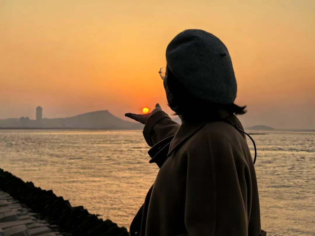 清晨寒风凛冽,我在观景台久久等候,不少人耐不住寒冷提前离开。当日江苏遇扬尘天气,日出并未如期跃出海面,待太阳现身,已高出海面两竿,灰蒙蒙、白乎乎,没有期待中的璀璨绚烂,虽有遗憾,却也是别样的旅行体验。