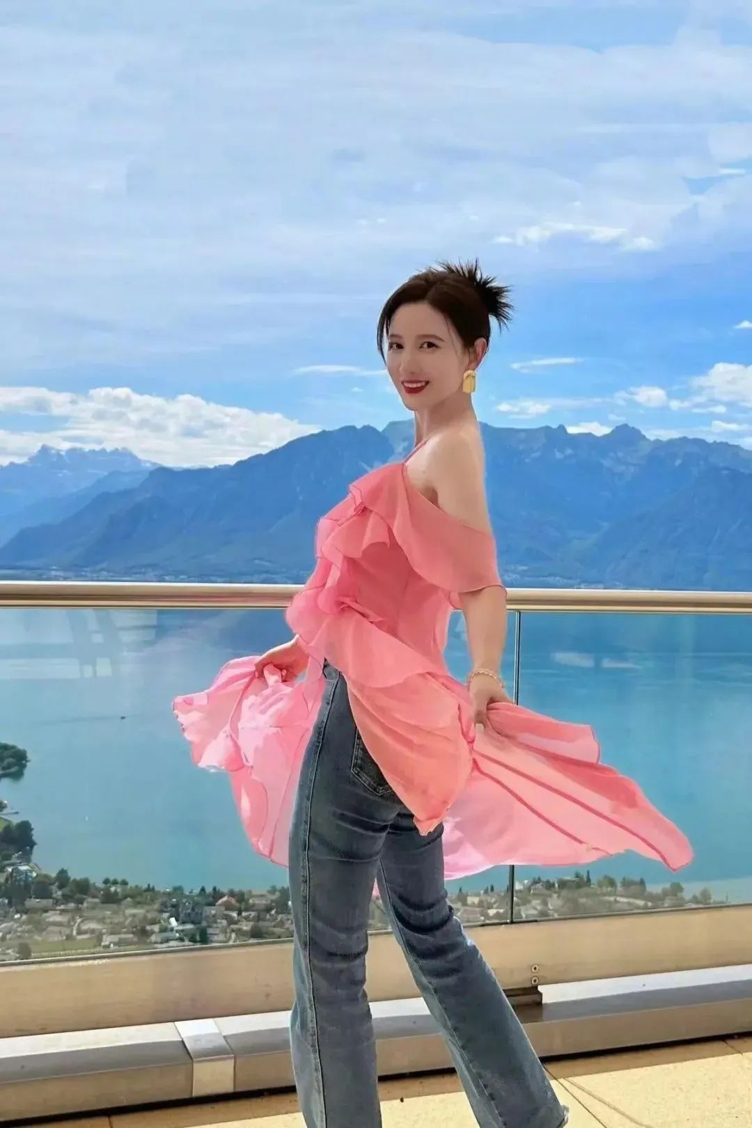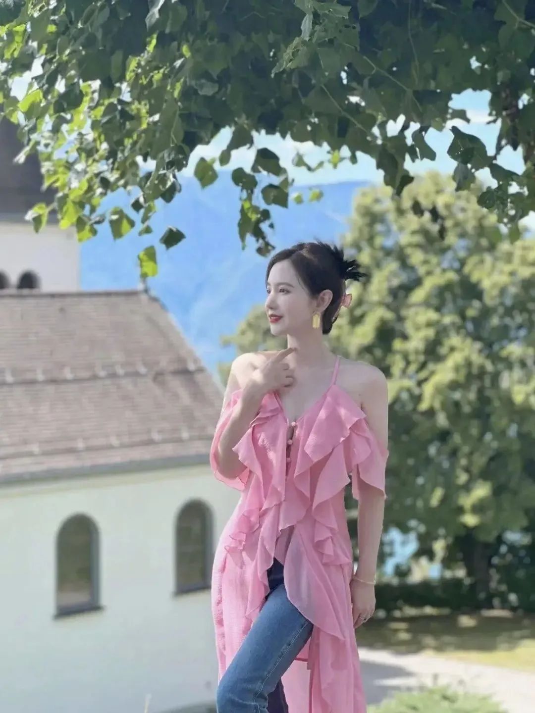 张萌引领新潮流!“度假风”吊带衫+牛仔裤,轻松打造时髦性感造型,让你瞬间年轻十岁!