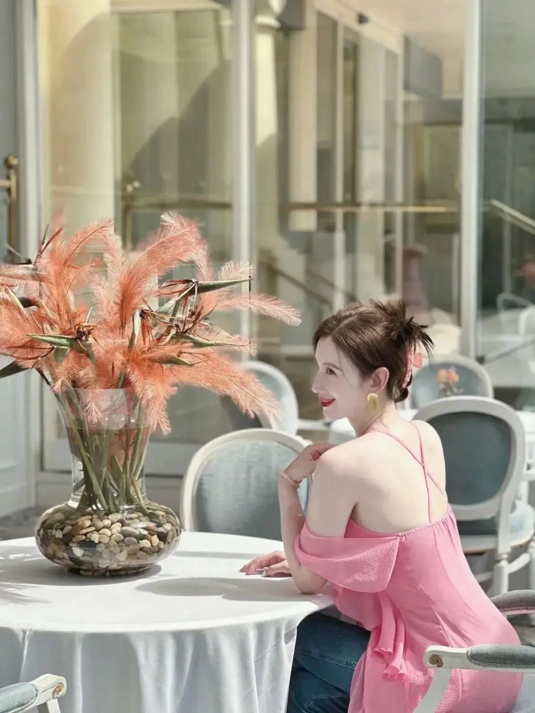 粉色吊带衫与高腰牛仔裤的搭配堪称完美。通过上短下长的穿搭方式拉高了腰线,优化了身材比例。而蓝色和粉色的撞色搭配则显得清新脱俗,让整体气质更加出众。这样的配色不仅时尚,还充满了活力。