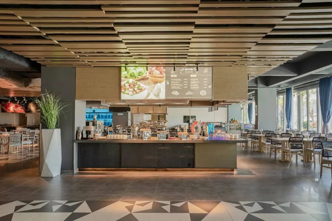酒店建筑造型呈折线状,面向470米海岸线敞开