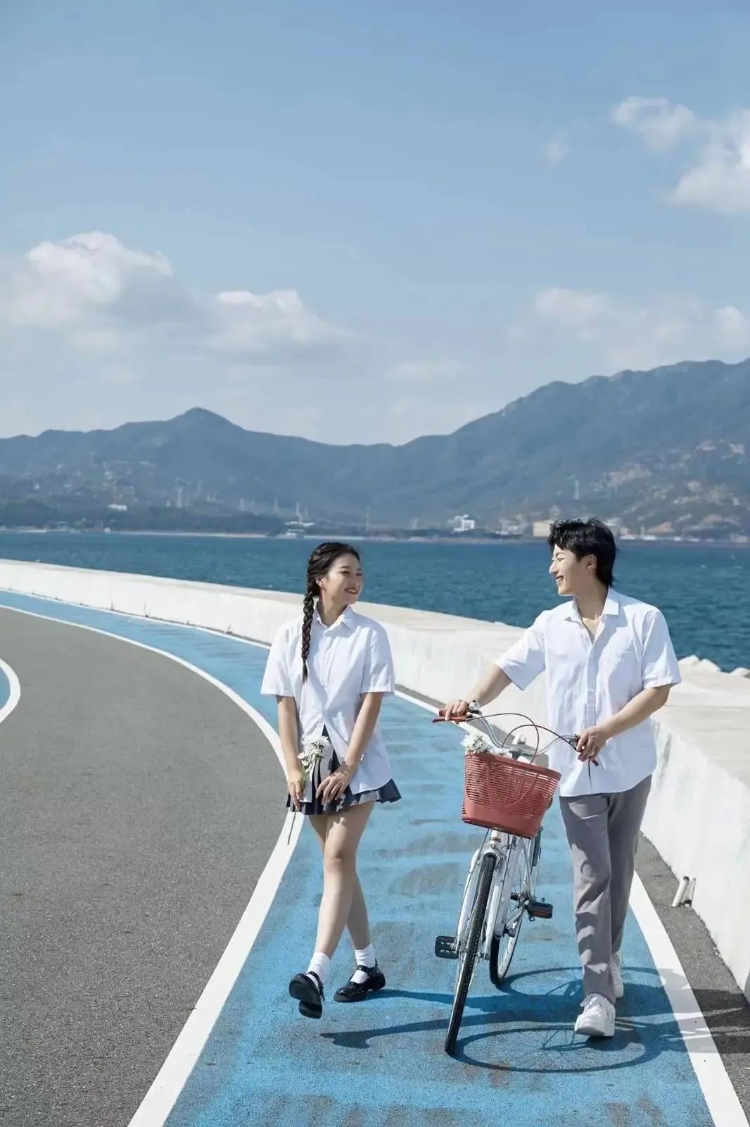 蓝天碧海与青山铺满取景框