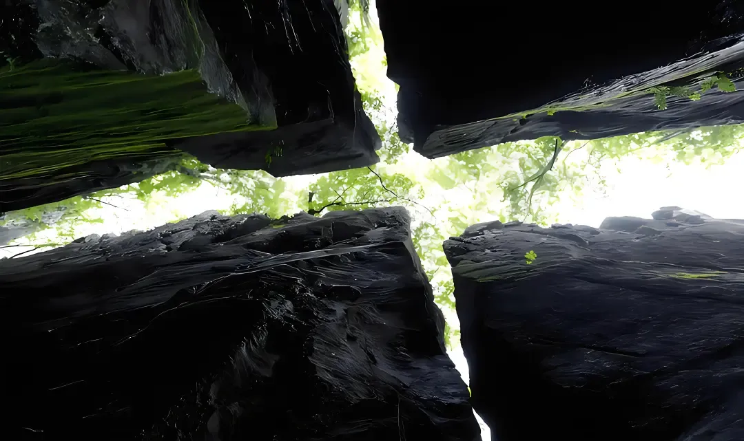 其中的 “十字八面一线天”堪称奇观!那巨石崖壁撕开一罅,如同被天斧劈裂一般,从中漏出一线天光。