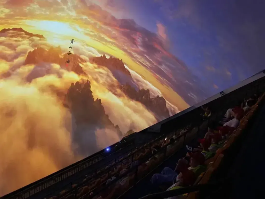 二楼的球幕影院是该馆一大亮点,影院采用23米超大的球形荧幕,配以112座的动感座椅,,带你体验到前所未有的视听震撼,仿佛亲身遇见黄山云海的壮丽景色,感受四季的变换。这是一项集球幕影院、飞行影院、多维影院和过山车等主流特种影院优点于一身的高科技新产品,将带您穿越时空,深入黄山的心脏。