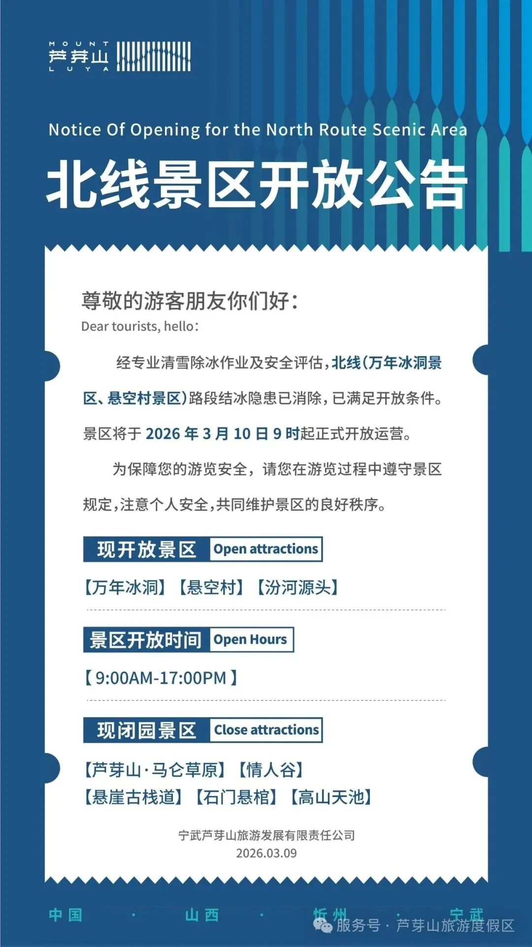 您现在的位置是:首页 > 国内旅游目的推荐 > 正文 国内旅游目的推荐 芦芽山旅游度假区丨北线景区开放公告 admin2026年03月09日 16:01:08国内旅游目的推荐1 芦芽山旅游度假区丨北线景区开放公告编辑| 贾宗翰来源| 芦芽山旅游度假区 转载请说明来源于"旅荐网",部分内容转载自网络,如有侵权请联系qlwl@foxmail.com删除 本文地址:https://www.15386.cn/post/139493.html 上一篇 2026提前招生⑪|智慧景区开发与管理专业 下一篇 第十二届敕勒川旅游文化节在土默特右旗隆重开幕啦 相关文章 国庆还宅在家?随州炎帝文化旅游嘉年华,超燃!超炸!带你嗨翻整个假期! 第十二届敕勒川旅游文化节在土默特右旗隆重开幕啦 2026提前招生⑪|智慧景区开发与管理专业 小西天景区今明两天闭园检查维护,暂停对外开放→ 春游江淮请您来|黄山市全部A级景区(49家54处)一年内对全国医护工作者免票! 【蒙顶山创建国家5A级景区】蒙顶山千亩山茶花迎春盛放 茶韵花香醉游人 #青秀山旅游体验 去天津港旅游 城岗景区 东乡族自治县东美文化旅游投资发展有限公司及旗下子公司招聘公告 发表评论 取消回复 评论列表 这篇文章还没有收到评论,赶紧来抢沙发吧~