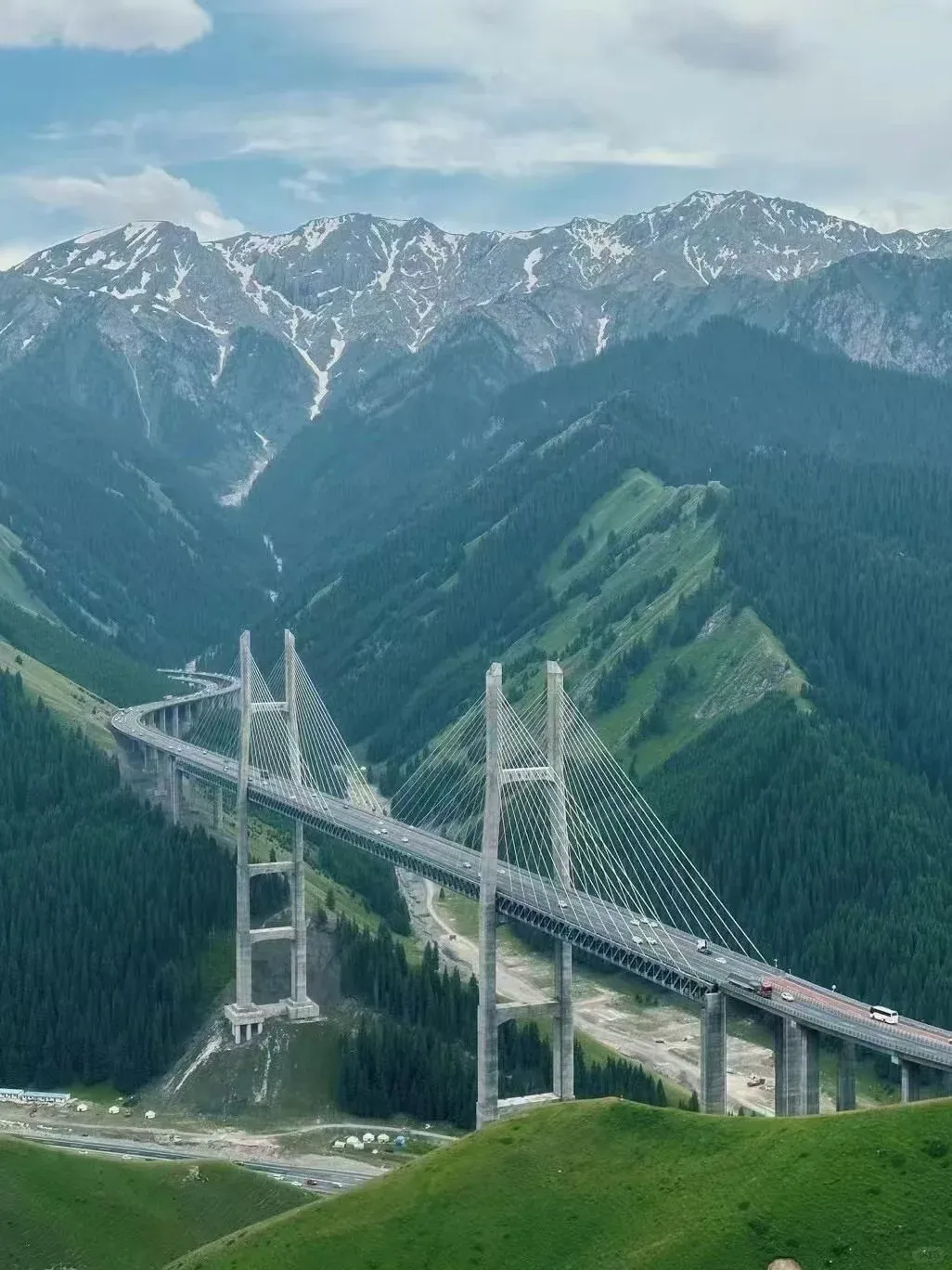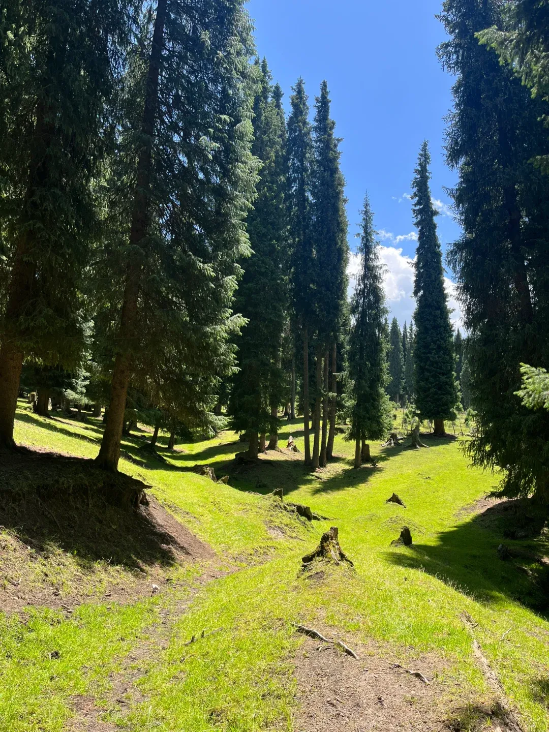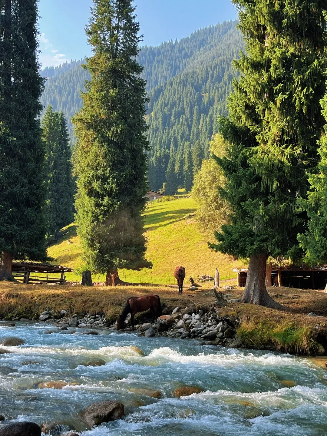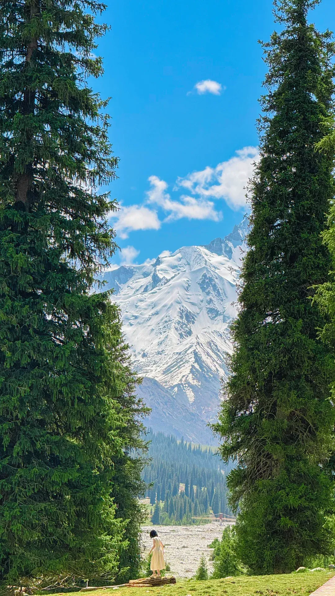 怡西是伊犁最先绿的草原,一般5月份就绿了。 在恰西森林最出片的位置 ,莫过于恰西画卷左边的小山坡 ,那个地方拍旱地拔葱和照片都很出片,穿行于原始云杉森林与高山草甸之间,沿途打卡恰西画卷(雪山、林海、草甸同框的标志性机位)、恰西石门(峡谷溪流与怪石嶙峋的自然奇观)