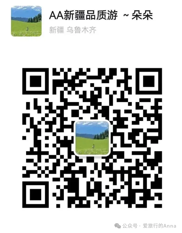 小推荐:新疆很大每天车程5小时以上,想省心省力一起玩的朋友可以加下朵朵,她们家是新疆本地正规旅行社有保障,专做2-6人拼车纯玩小团,也有专属私人订制、包车。可以扫一扫免费咨询哦~↓↓↓↓