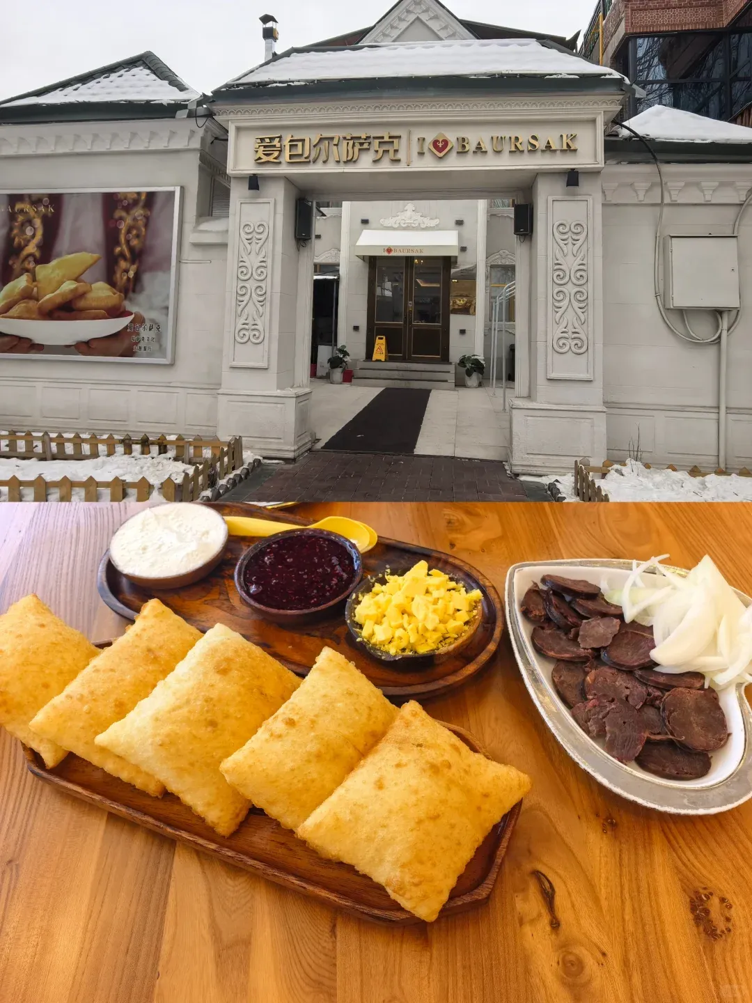 哈萨克族的美食,像油饼,但更酥脆,配上一点酥油或果酱,香味四溢。店里马肉也是伊犁独有的美食,马肉一般是熏出来的,比牛肉更有嚼劲儿,有烟熏味,内地朋友可以尝试但不一定喜欢。纳仁是马肉+洋葱碎的面条。