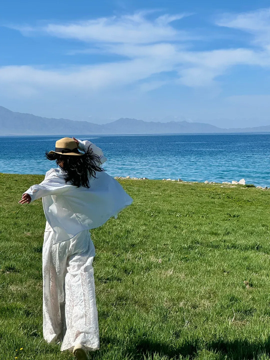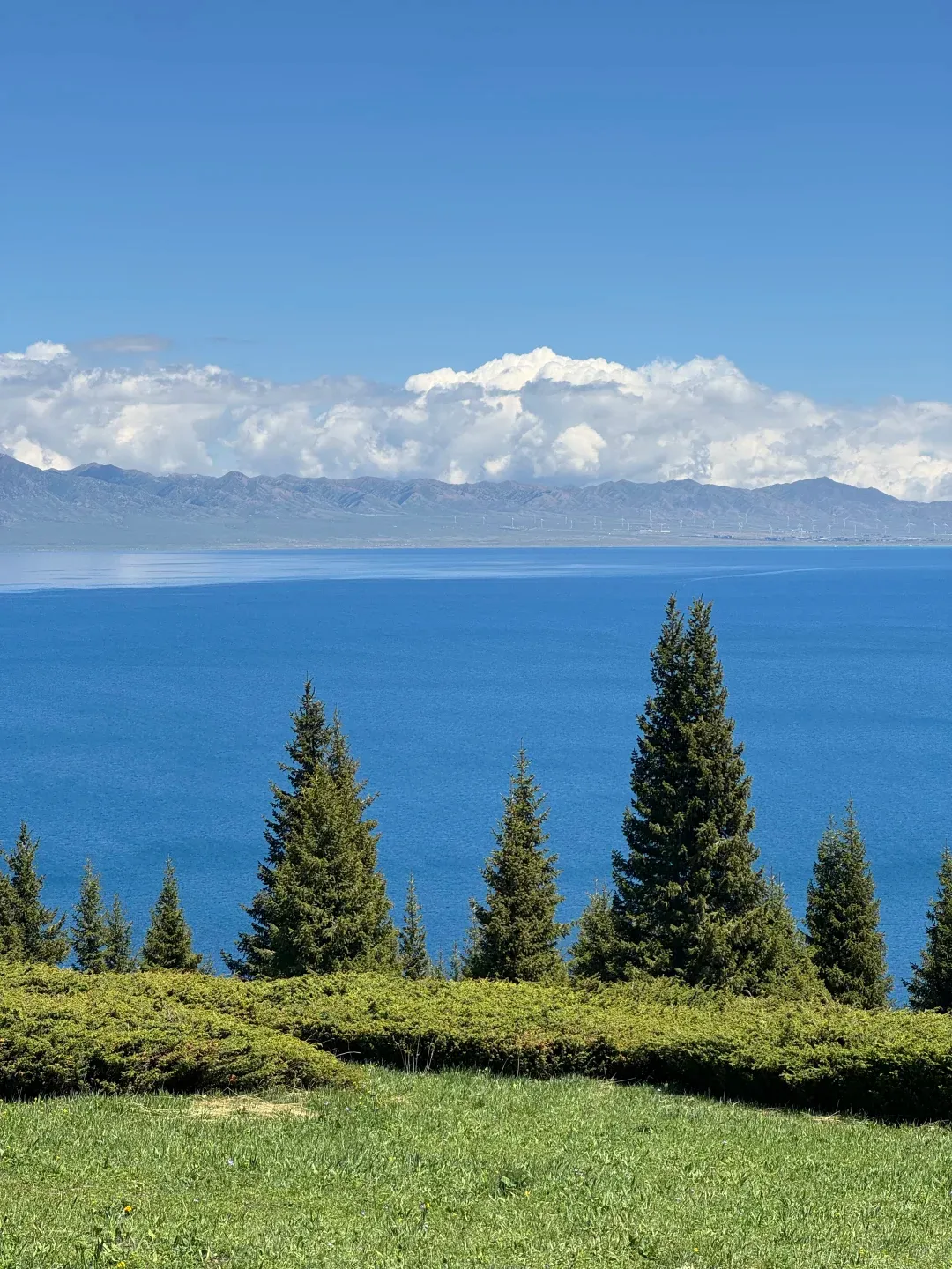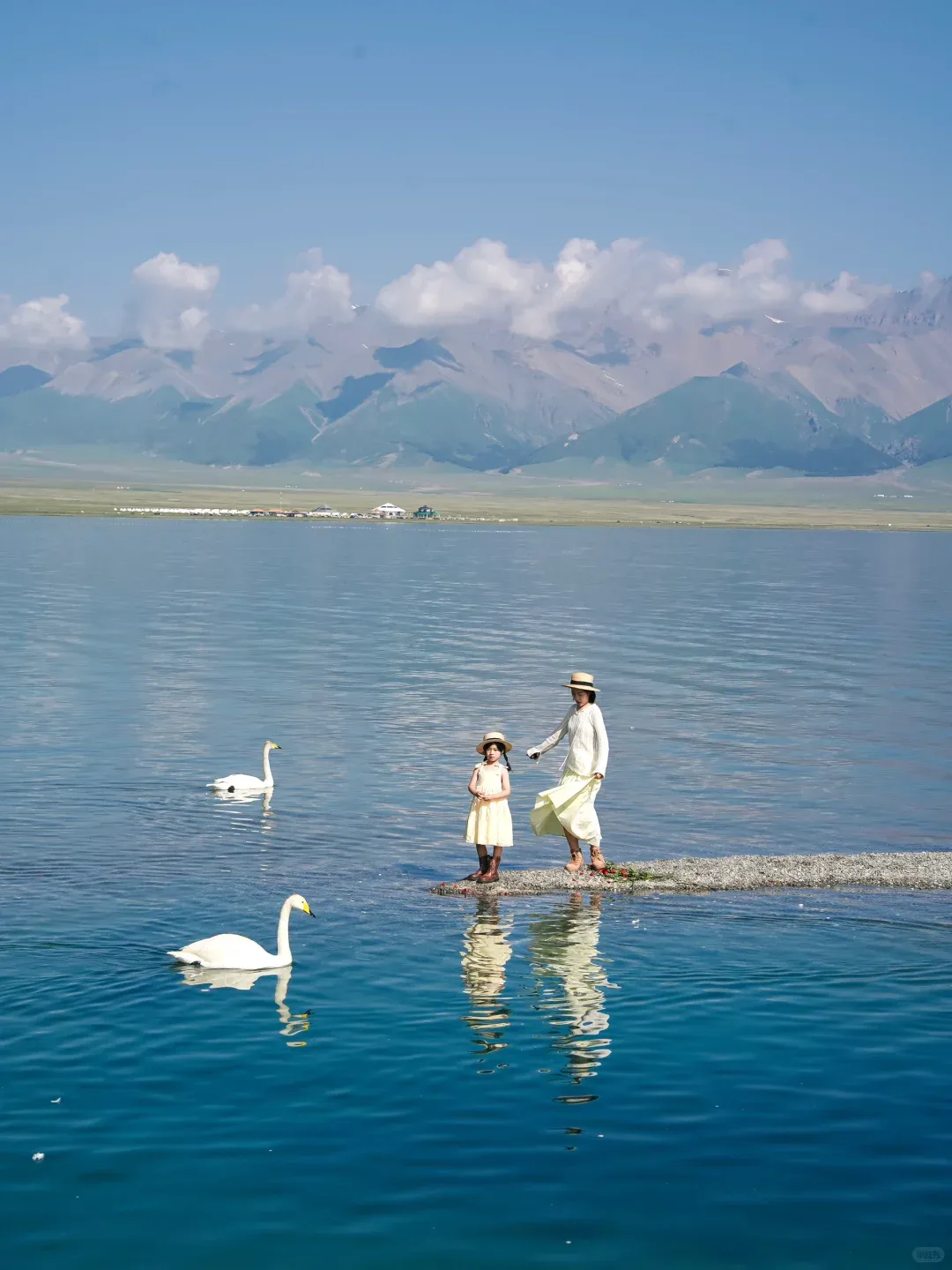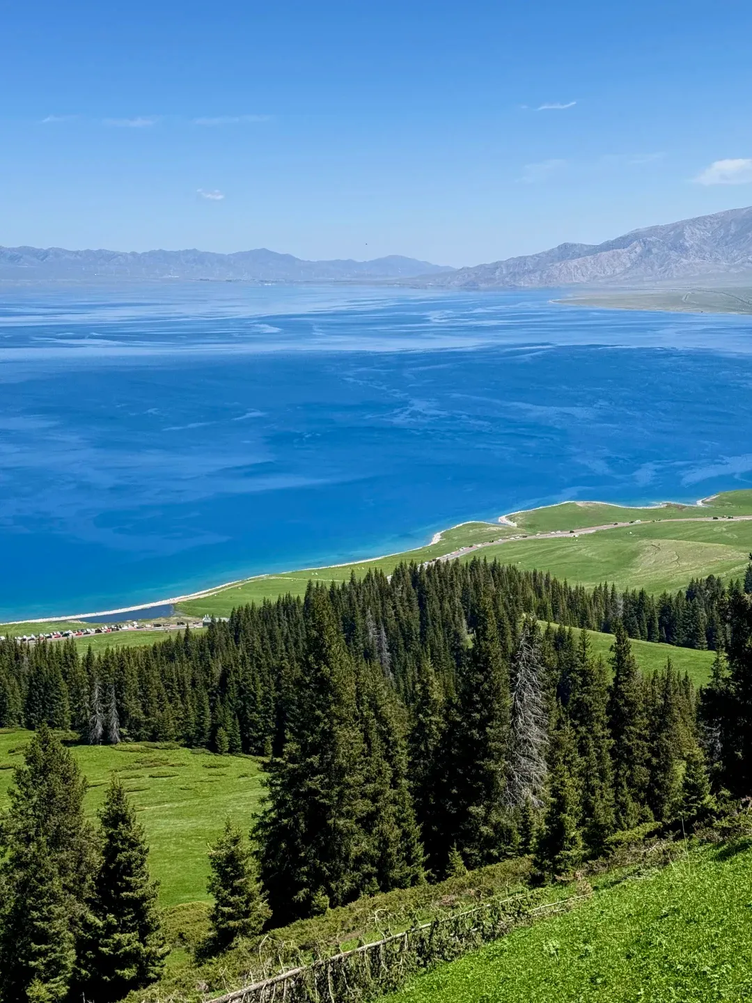 第二天吃完早餐后开启南线深度环湖。沿着湖岸公路一路向东,打卡月亮湾:这里湖水呈现层次丰富的蓝绿色,雪山倒影在湖面,随手一拍都是壁纸级大片;