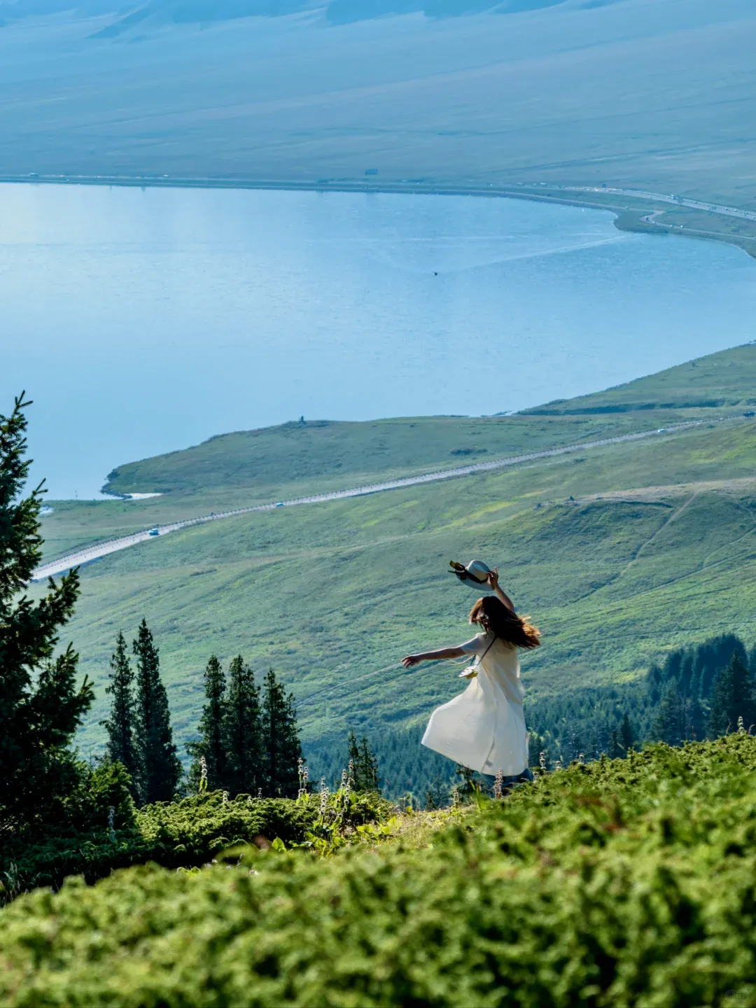 最后抵达南门松树头:徒步至观景台,俯瞰赛里木湖全景与果子沟大桥的蜿蜒身姿,山风裹挟着湖水的清凉,视野开阔到可以拥抱整个山谷。自驾途中可随时停车,观赏湖光山色。