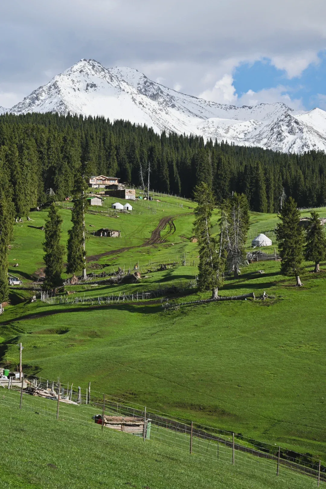 早餐后从巩留出发,前往琼库什台村。绿野迷踪琼库什台深度漫游,这座藏在天山深处的乌孙古村落,保留着原始的木屋与石板路。漫步村落街巷,看哈萨克族牧民的毡房错落分布,远处的雪山与近处的草原相映成趣。
