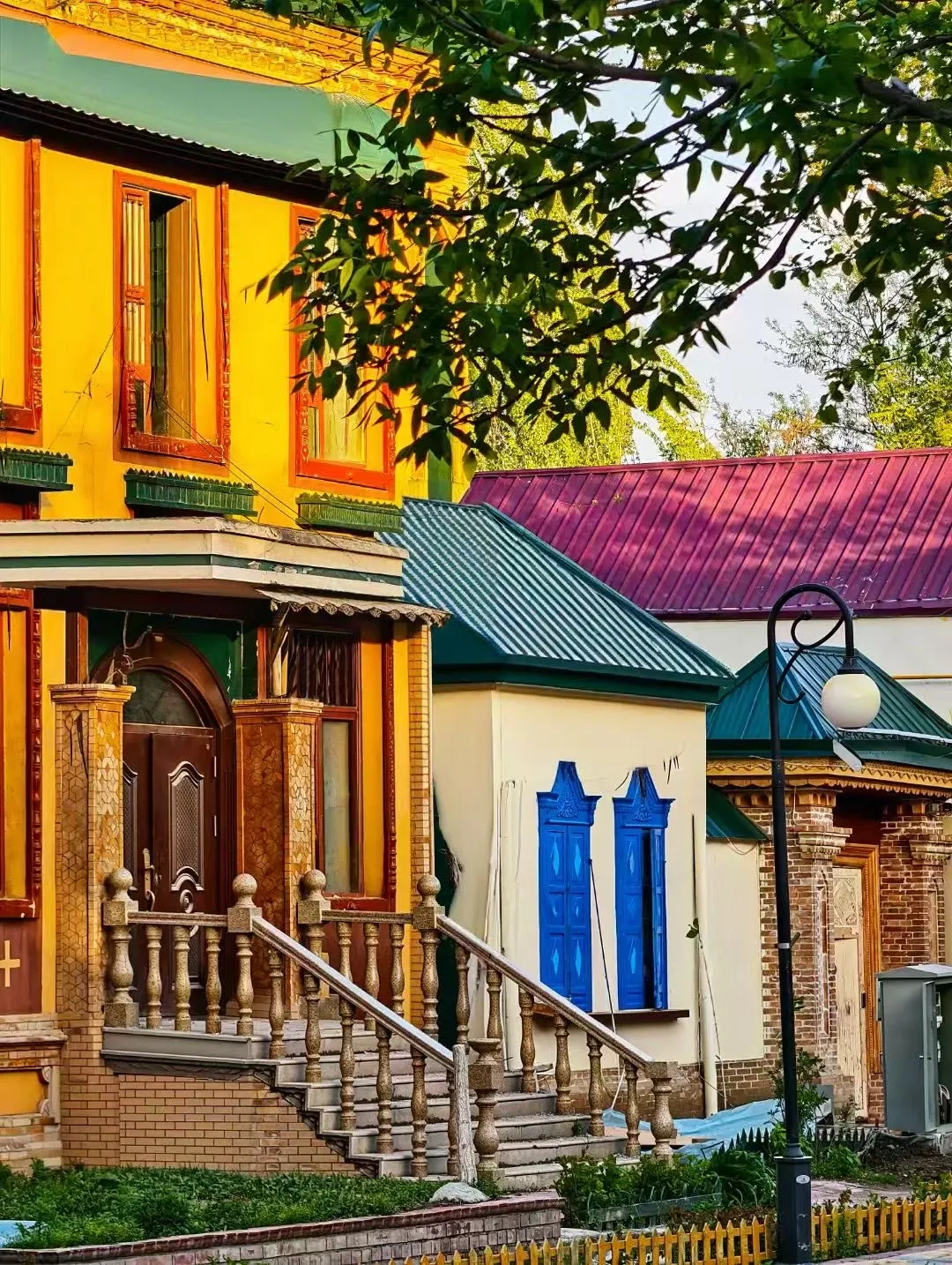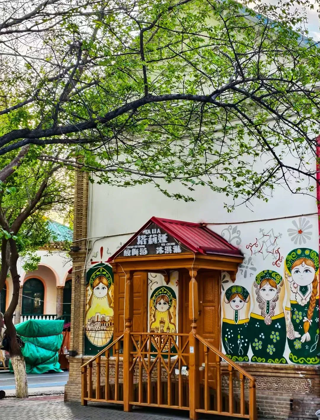 从夏塔森林公园驶出,前往伊宁六星街。多巴胺六星街自由漫游,走进彩色的六星街,这里是伊宁最具异域风情的街区,蓝红相间的俄式民居、手风琴博物馆、特色手作店与咖啡馆交织出浓郁的多巴胺氛围。