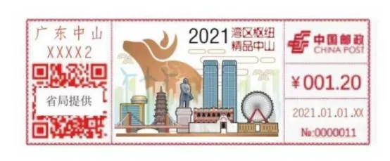 明年起,中山市将首次启用彩色邮资机戳,主题为“湾区枢纽精品中山”。