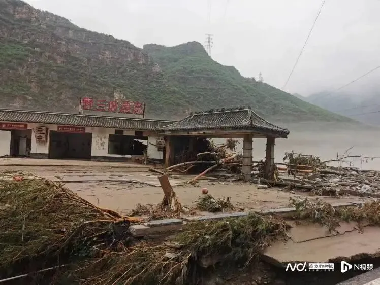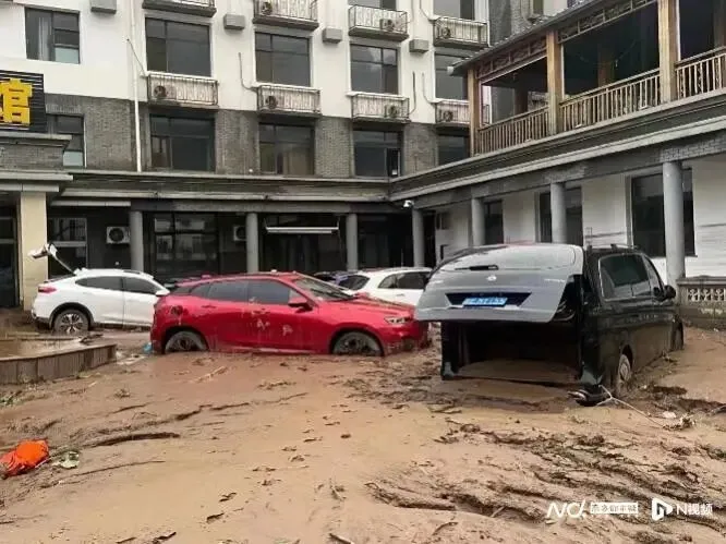 交界口村的北侧是野三坡鱼谷洞泉景区,向南走十多公里是野三坡百里峡景区。因此,交界口村以旅游业为核心发展了许多特色民宿、酒店。如今,洪水过境后的交界口村已是狼藉满地。