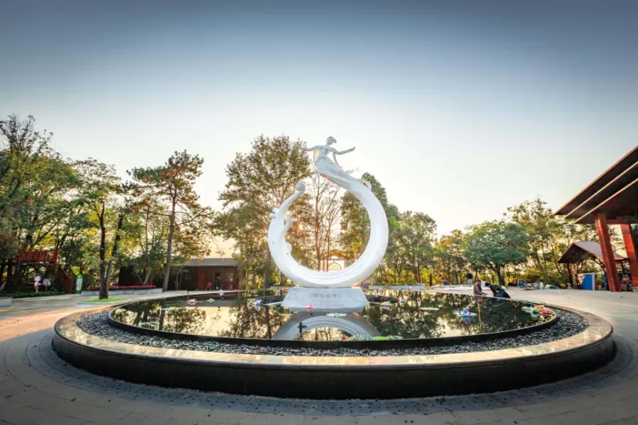 女神岛:包括女神广场、女神餐厅、不走亭、镜心楼、观海平台、空中玻璃栈道、好汉坡、丛林穿越等景点。此岛以西海女神的浪漫感人的爱情故事为主线,是一座汇集桃花仙子的美丽传说、游览、观光、体验的精品岛屿。在女神岛,可以观赏秀雅湖岛仙境、 聆听美秒神话意境、探寻绚丽岛林幻境、赏鉴奇绝西海大境,亦可领略陶渊明笔下《桃花源记》的柳暗花明。