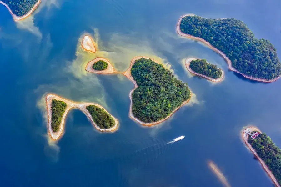 庐山西海位于江西省九江市庐山风景名胜区内,是国家5A级旅游景区,也是中国最大的淡水湖泊群岛景区。地跨永修、武宁两县,是一处集国家级风景名胜区、国家水利风景区、国家森林公园、亚洲大土坝水库等为一体的山岳湖泊型特大景区,集生态观光、休闲度假、水上娱乐、避暑疗养于一体,被誉为“天上云居、诗画西海”。