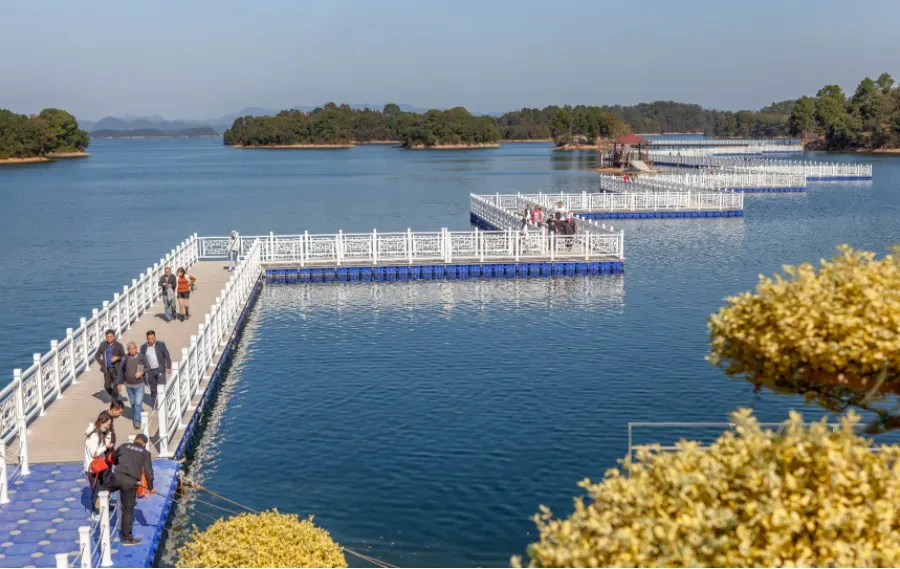 02.暖身暖心的快乐之旅解放一身乏意的舒心体验最大限度地满足人们对于华式、日式、泰式、罗马式以及芬兰式等不同温泉文化的需要,西海温泉将自唐代就已出现的西海温泉养生浴发展到极致!晚餐自理后前往【柘林老镇】柘林老镇美食文创园项目是庐山西海成功创建国家5A级旅游景区之后,建成的第一个美食休闲文旅项目,投资约6亿元,项目一期约161亩,其中特色美食街区占地61亩,建筑面积约2万㎡,由特色美食街区、东湖塘山水民居、生态停车场等组成。美食文创园位于亚洲第一土坝脚下,充分利用庐山西海绝佳的山水资源,采用“赣派为主、局部混搭”的建筑风貌,形成一个吃、喝、玩、游、购、娱等沉浸式特色园区与灵动山水完美结合的美食休闲文化度假园区,这里不仅有众多地方名优特产,非遗特色小吃、非遗展演,更有全天候的艺术表演,据保守估计,大概人流量每年达到200万人次。庐山西海风景区管委会副主任兰志春告诉记者:风景区以湖岛夜游和柘林老镇美食文创园两个模块为引领,提升周边酒店、民宿及文化街区的品位,打造夜游经济体系模式,通过这个模式,促进景区内外联动,让游客留下来。行程结束后入住酒店. 第2天:柘林湖--出发地 含:早餐 住:温馨的家