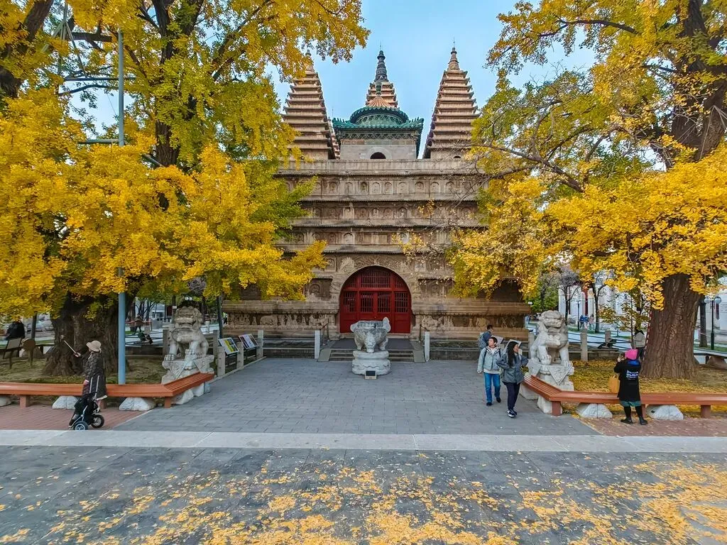 纵使光阴流转,山河跌宕,金刚宝座与古银杏依然朴素安静,不减风姿地伫立。寺内众生络绎不绝,在金刚宝座与古银杏前来来往往拍照留恋,古建与银杏搭配的秋景构图,确实妙不可言。
