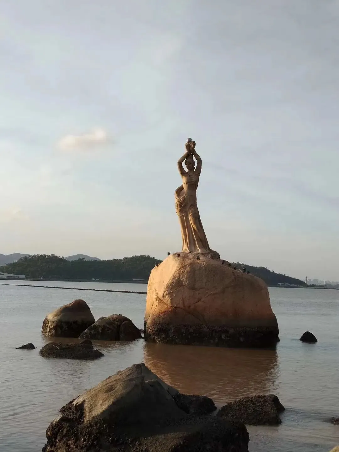 “愿为尘外契,一就智珠明”,我终于来到情侣路的中段,见到了婀娜多姿的“珠海渔女”雕像。这是珠海最具代表性的景点和重要的地标,更是这座城市的象征。