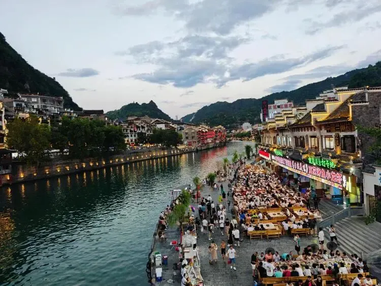 第2天:早餐后前往荔波小七孔景区,游玩【大,小七孔桥】【天星桥】【拉雅瀑布】【卧龙潭】【68叠瀑布】,前往西江千户苗寨,特别赠送高山流水长桌宴。