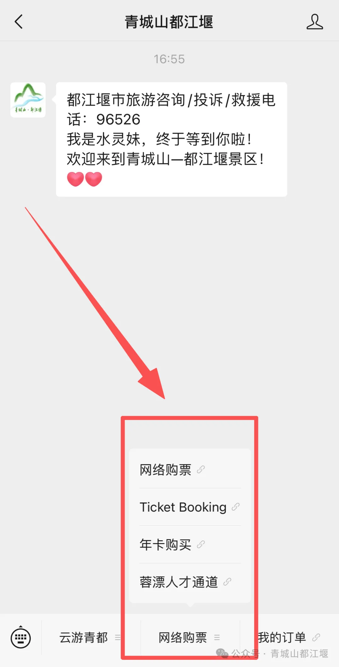 进入“青城山都江堰”或“悦游都江堰”公众号