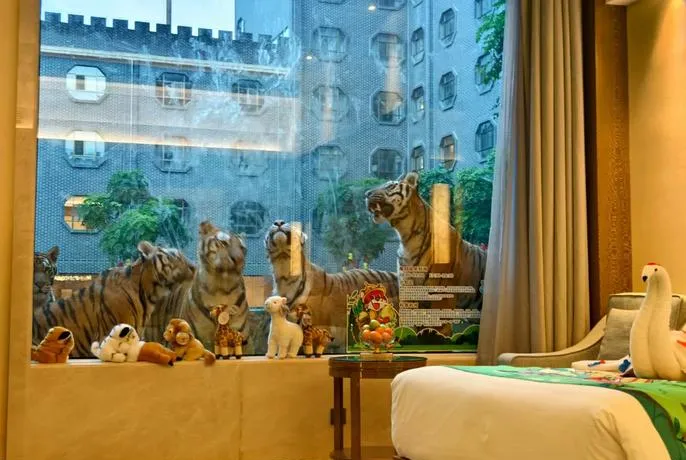 园子里有东北虎、非洲狮、黑熊这些大型猛兽,它们就在车道两边活动,隔着车窗你能看到它们懒洋洋晒太阳或者突然站起来盯着你的车看,那种眼神交汇的瞬间,你会明白什么叫真正的野性,不是动物园里训练出来的温顺,是它们本该有的那股劲儿。这个地方适合带孩子来,不是为了教他们认识动物,是让他们感受到人在自然面前的位置,这个认知比背多少动物百科都管用。