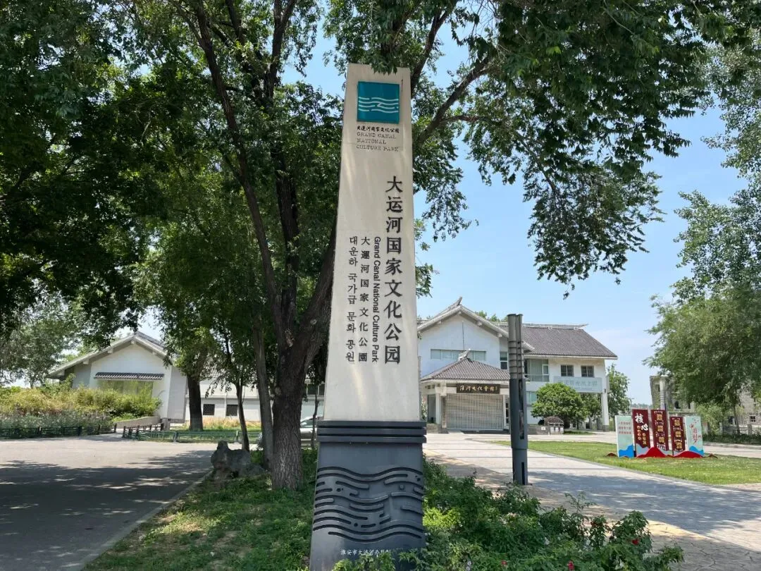 下到山脚,出了园区,穿过马路,来到对面。路旁立着一块竖形标志牌,上写:“大运河国家文化公园”。