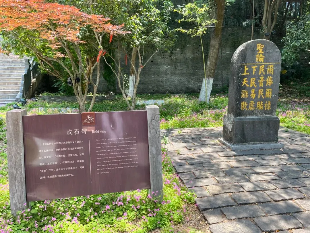 上写:“圣谕:尔俸尔禄,民脂民膏,下民易虐,上天难欺。”旁边一块牌子上写道:“《戒石碑》”