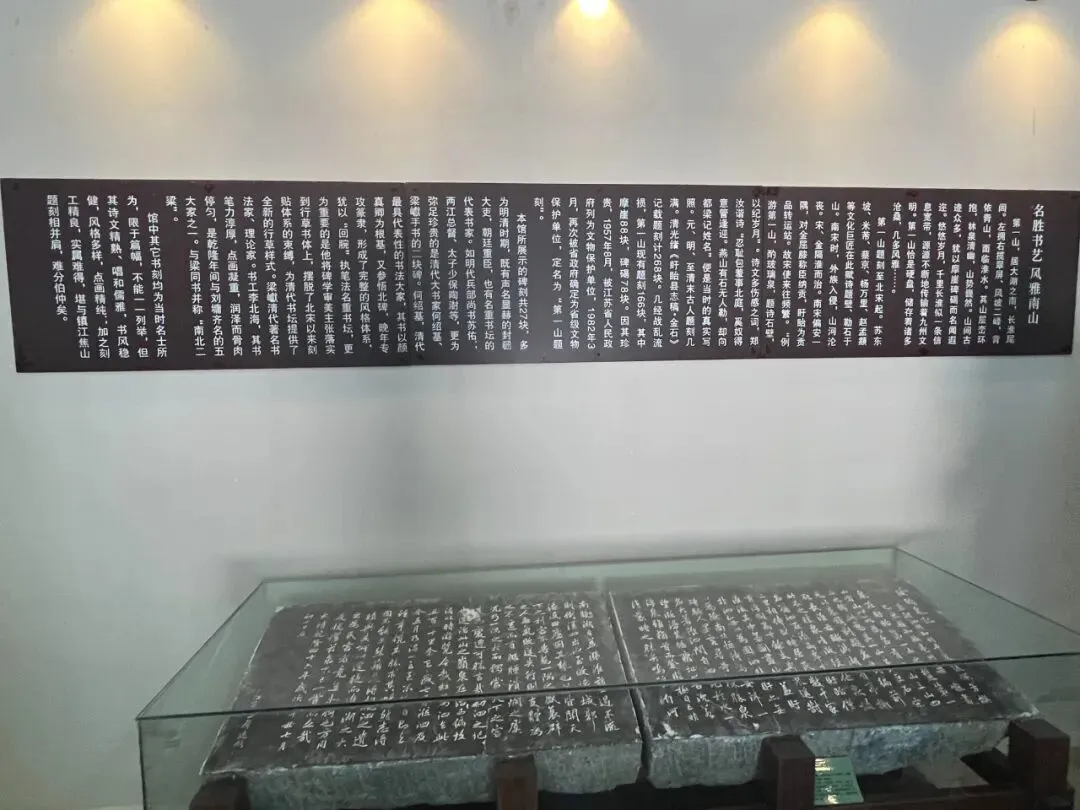 走进门内,是一个小型展览,书画并茂,题目为“名胜书艺风雅南山”: