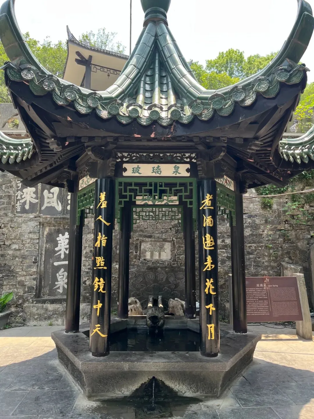 亭子的另一边立着一块牌子,上写:“玻璃泉”: